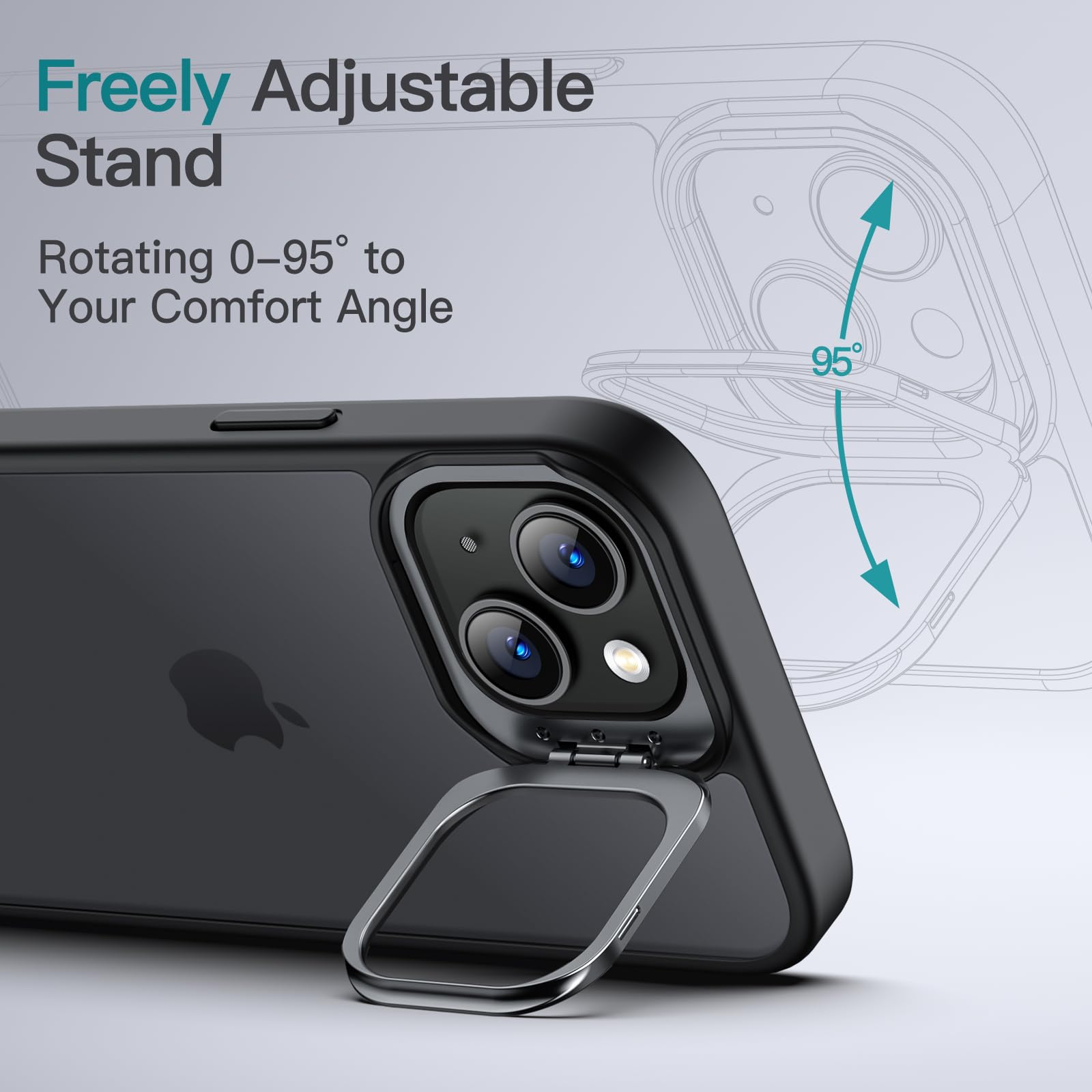 JETech Kickstand Case for iPhone 15 6.1-Inch, Built-in Adjustable Camera Stand, Military Grade Drop Protection, Frosted Translucent Matte Back Shockproof Phone Cover
