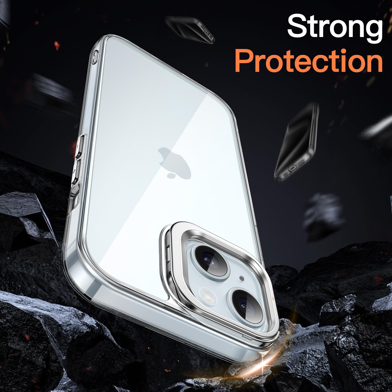 [Built-in Stand] Especially designed for iPhone 15 6.1-inch. Non-yellowing clear case with built-in camera ring stand. Also support wireless charging