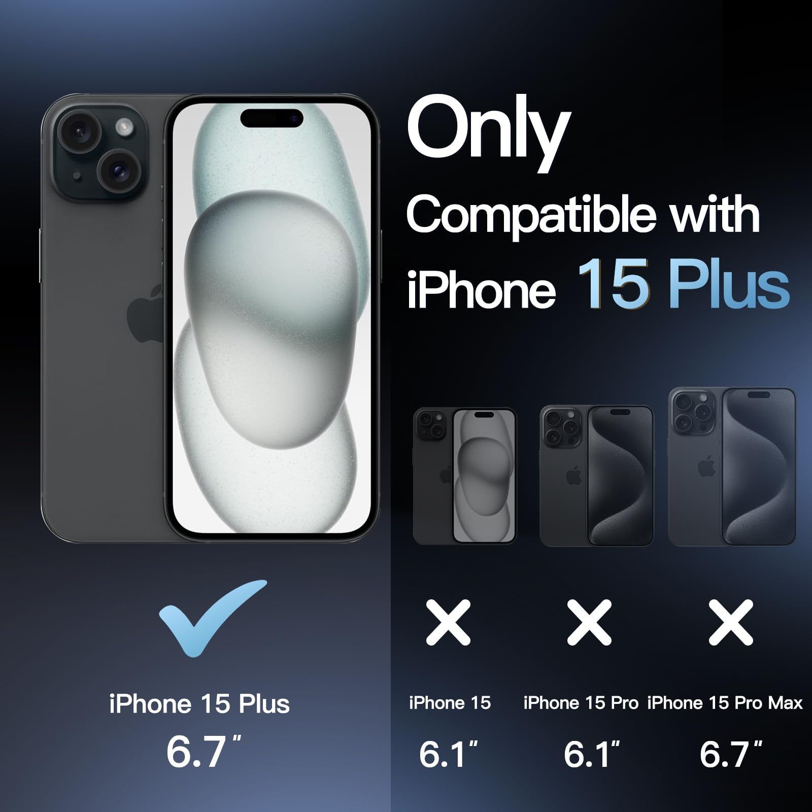 • [Compatibility] Exclusively designed for iPhone 15 Plus 6.7-inch. NOTE: Not for iPhone 15 / iPhone 15 Pro / iPhone 15 Pro Max. Support wireless charging