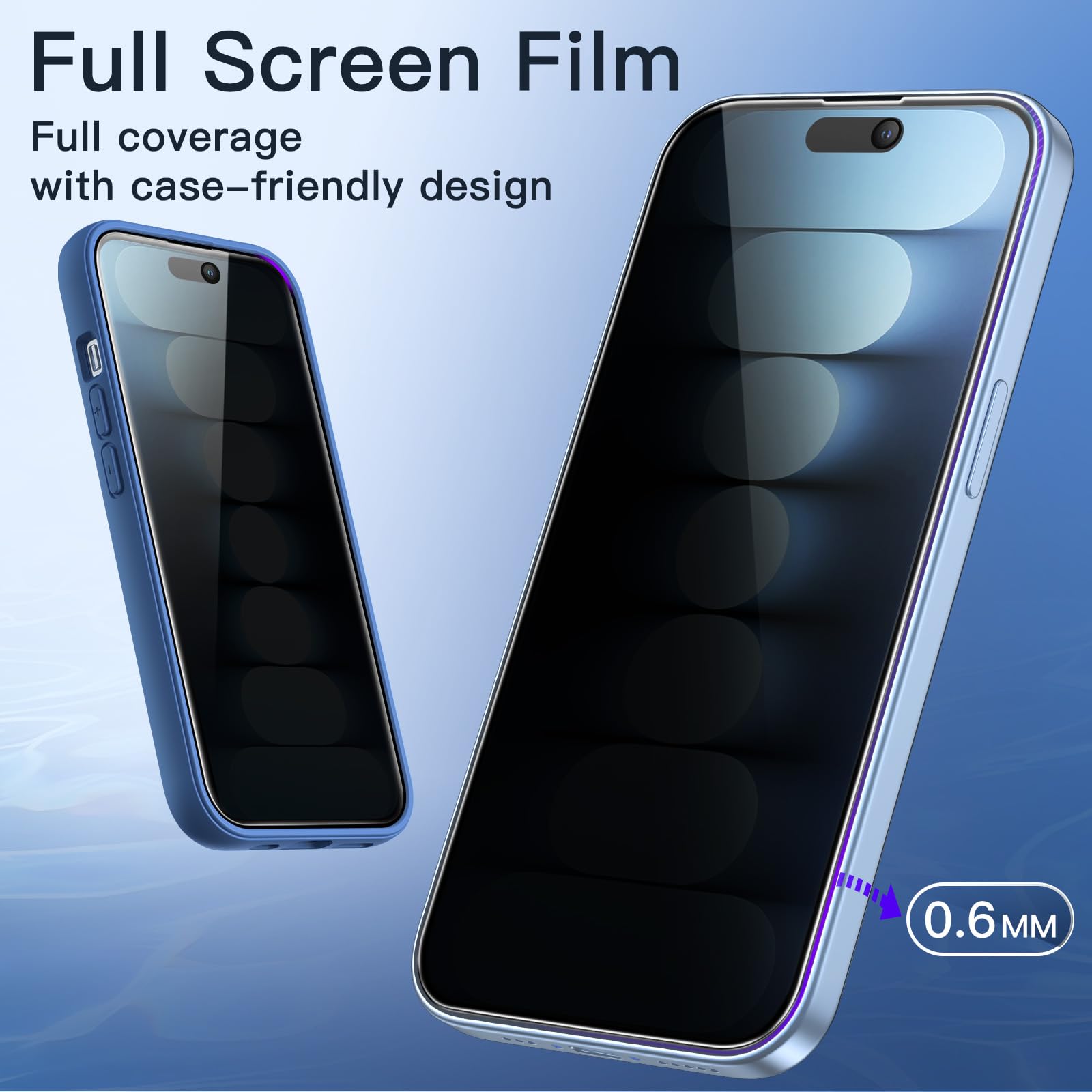 JETech Privacy Full Coverage Screen Protector for iPhone 15 Plus 6.7-Inch, Black Edge Anti-Spy Tempered Glass Film with Easy Installation Tool, Case-Friendly, 2-Pack