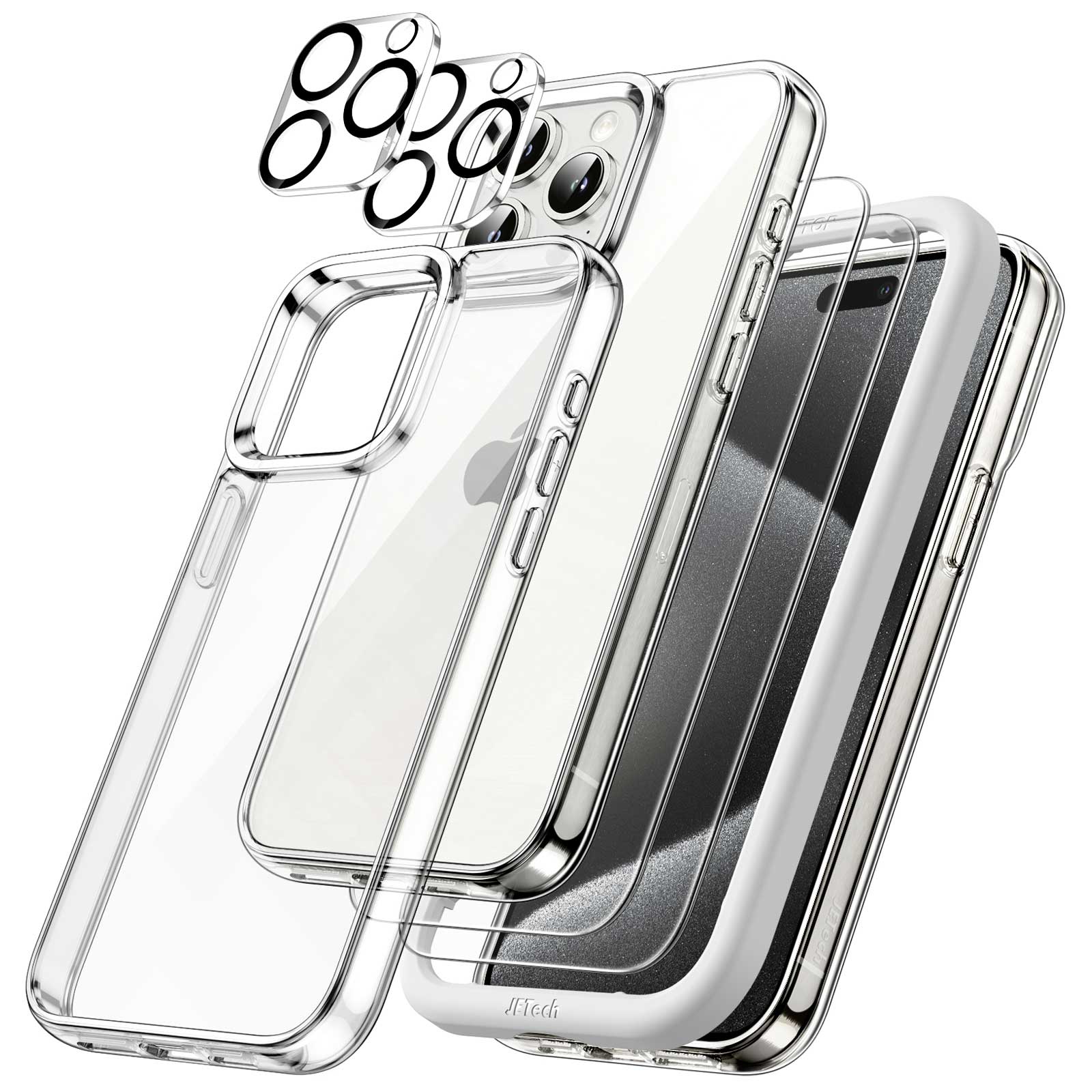 9 reviews for JETech 5 in 1 Case for iPhone 15 Pro 6.1-Inch with 2-Pack Each Tempered Glass Screen Protector and Camera Lens Protector, Non-Yellowing Shockproof Bumper Phone Cover