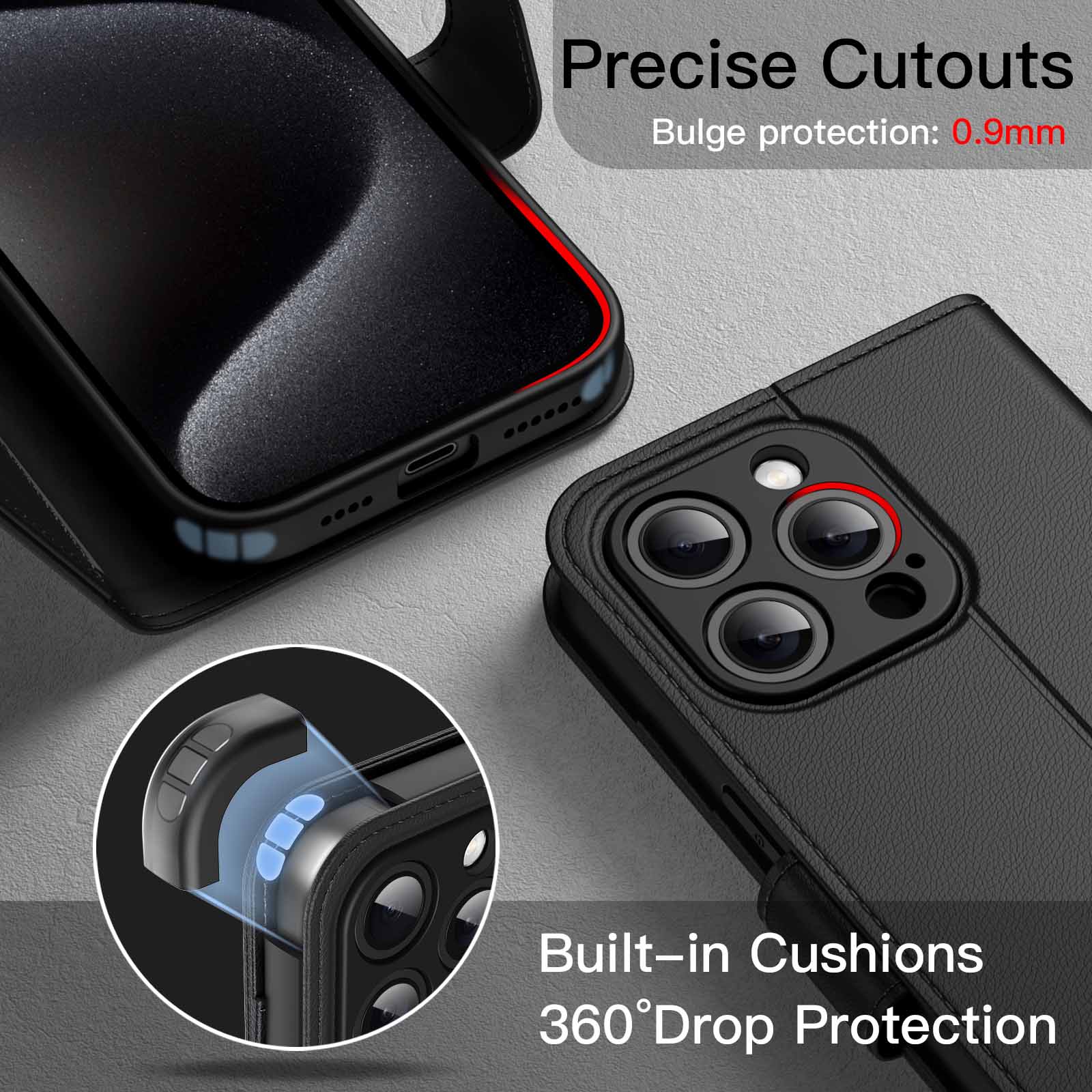 • [All-Around Protection] Designed for iPhone 15 Pro 6.1-inch. PU leather cover and inner flexible TPU back protect your device from scratches, shocks and bumps. Premium materials ensure a comfortable grip