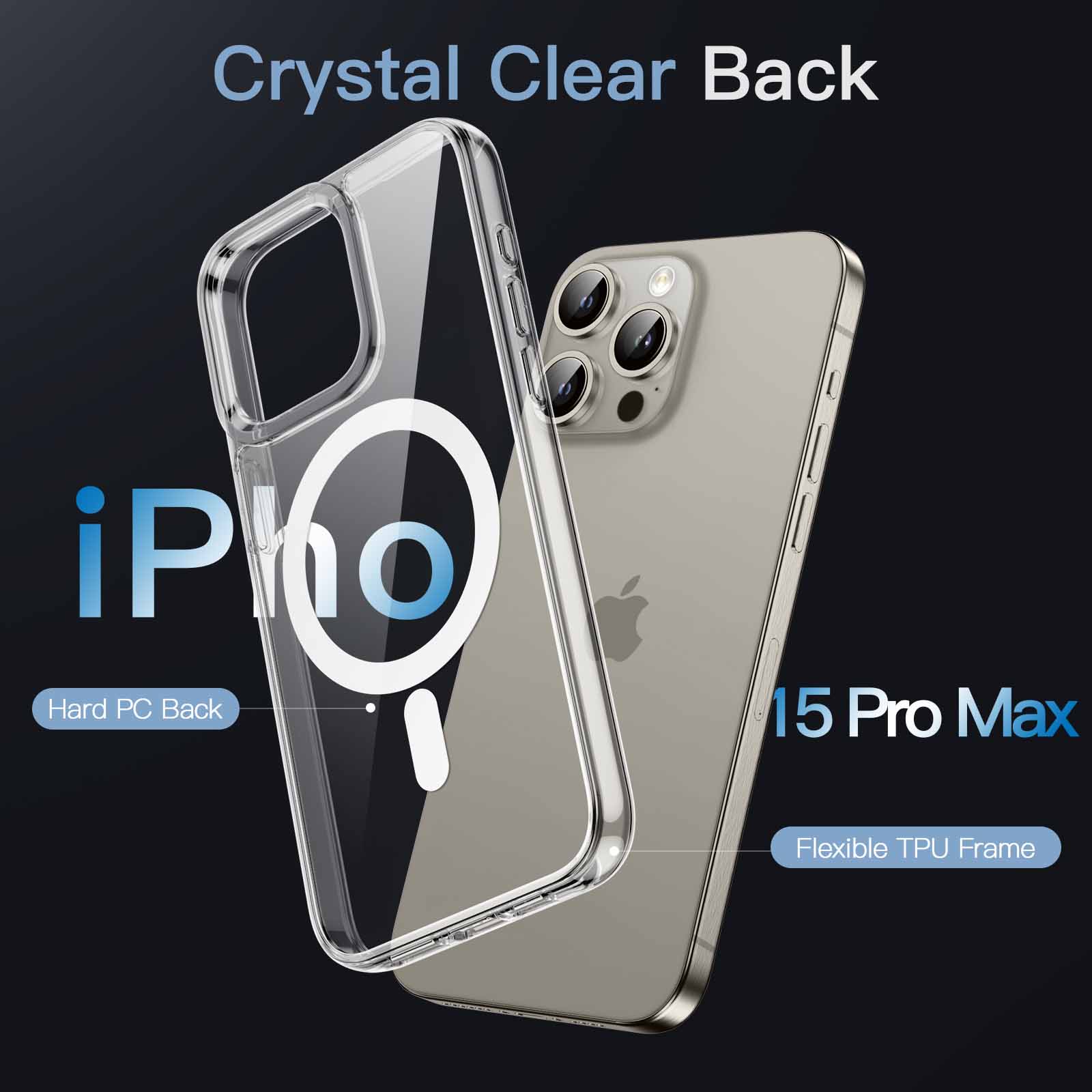 [Compatibility] Exclusively designed for iPhone 15 Pro Max 6.7-inch. NOTE: Not for iPhone 15 Pro 6.1-inch. With built-in 38 pieces of magnets, the clear case is compatible with all MagSafe accessories