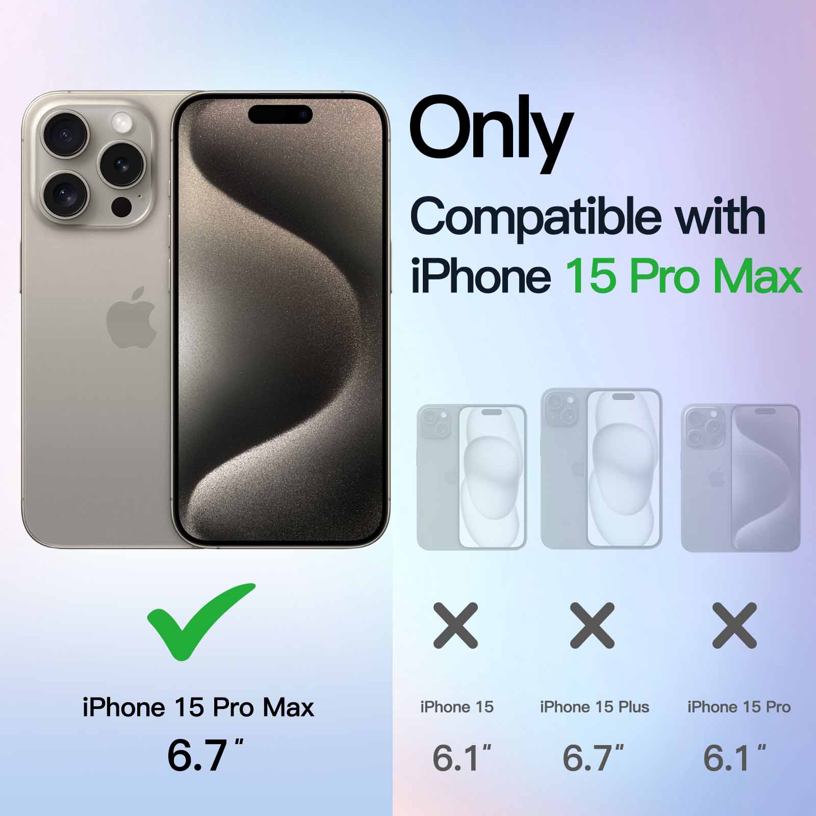[Long Lasting Glitter] Designed for iPhone 15 Pro Max 6.7 inch for women and girls. NOTE: Not for iPhone 15 Pro 6.1-inch. The embedded eye-catching glitters will never flake off and stay bling, making your phone more attractive and fashionable