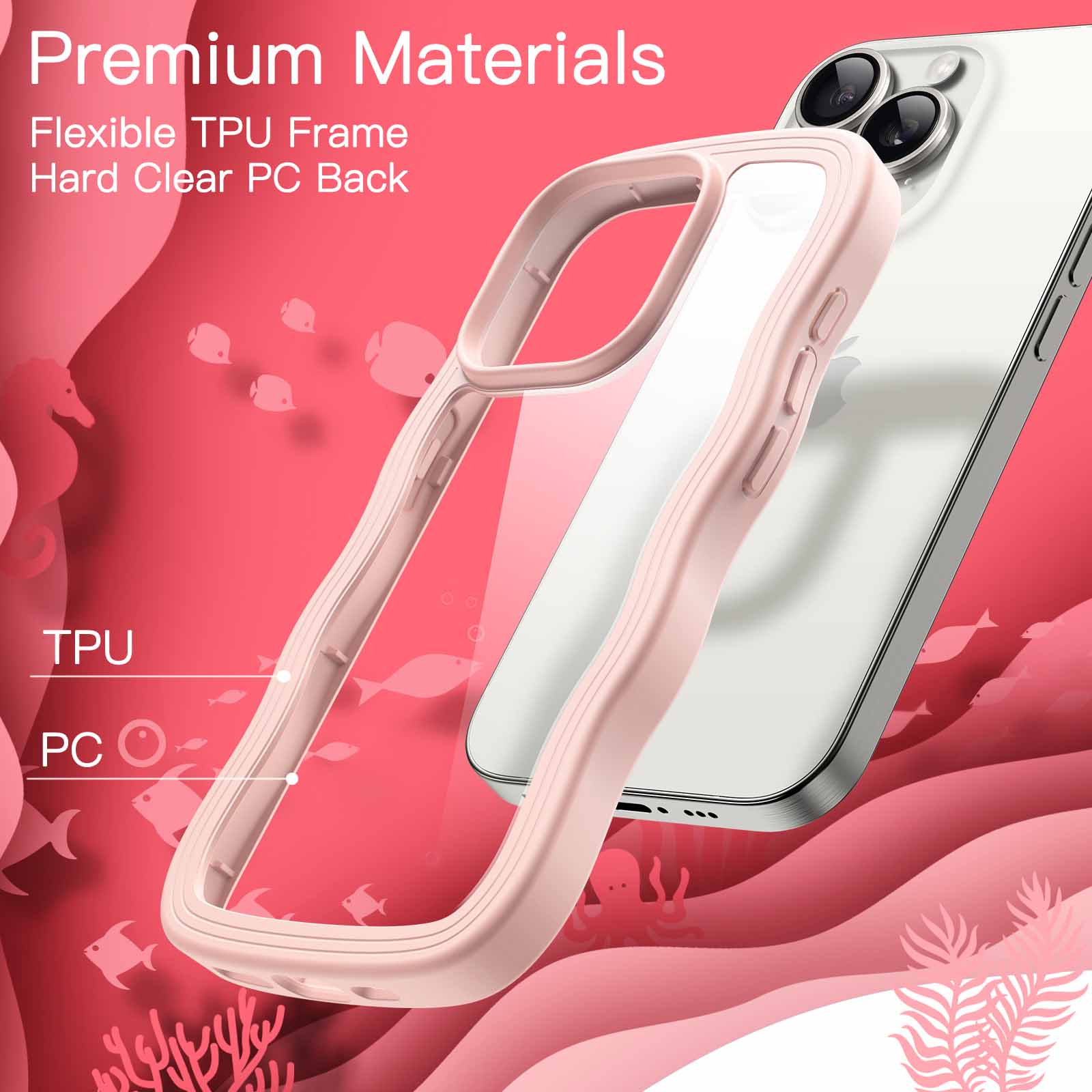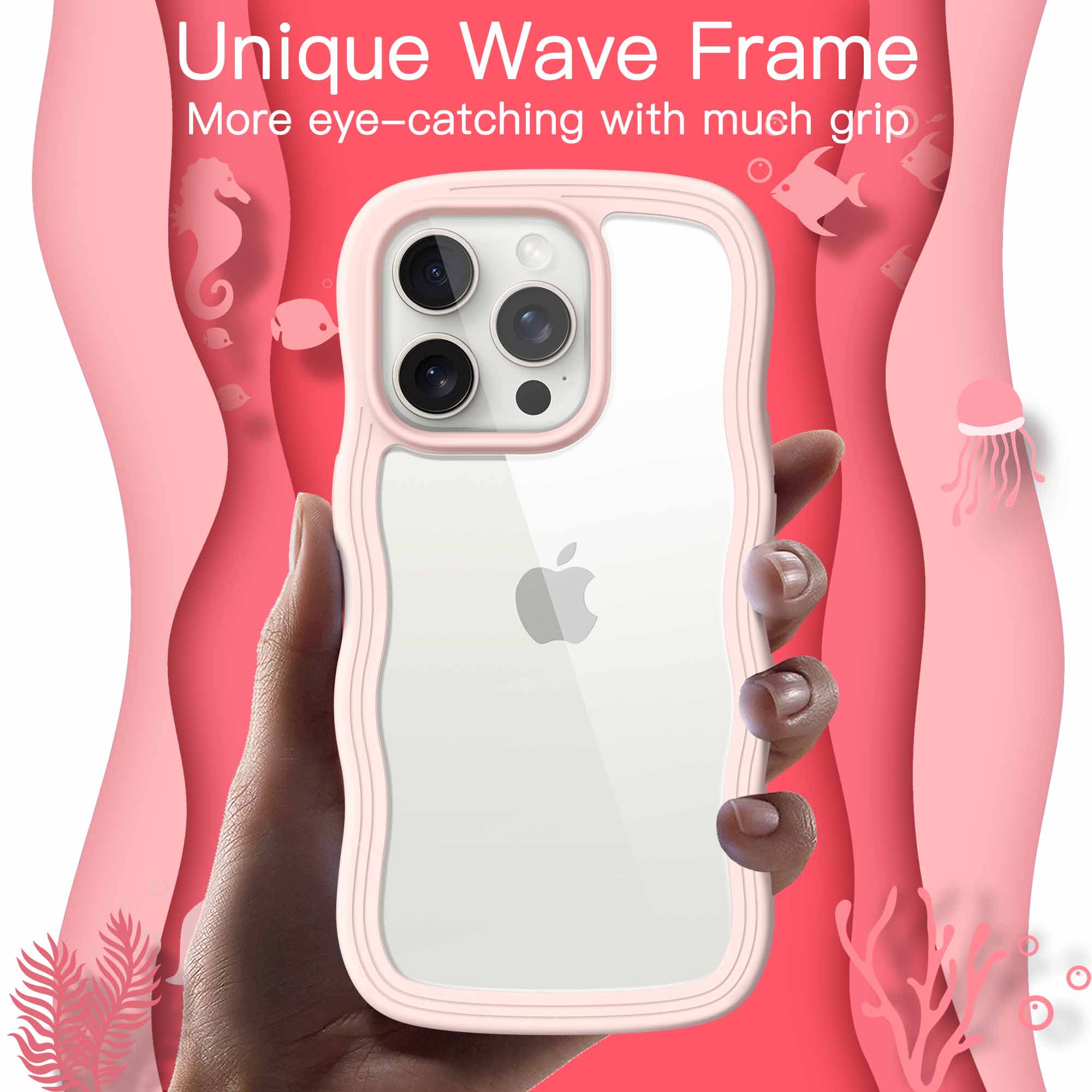 14 reviews for JETech Cute Case for iPhone 15 Pro Max 6.7-Inch, Wave Frame Curly Shape Shockproof Phone Cover for Women and Girls, Clear Hard PC Back
