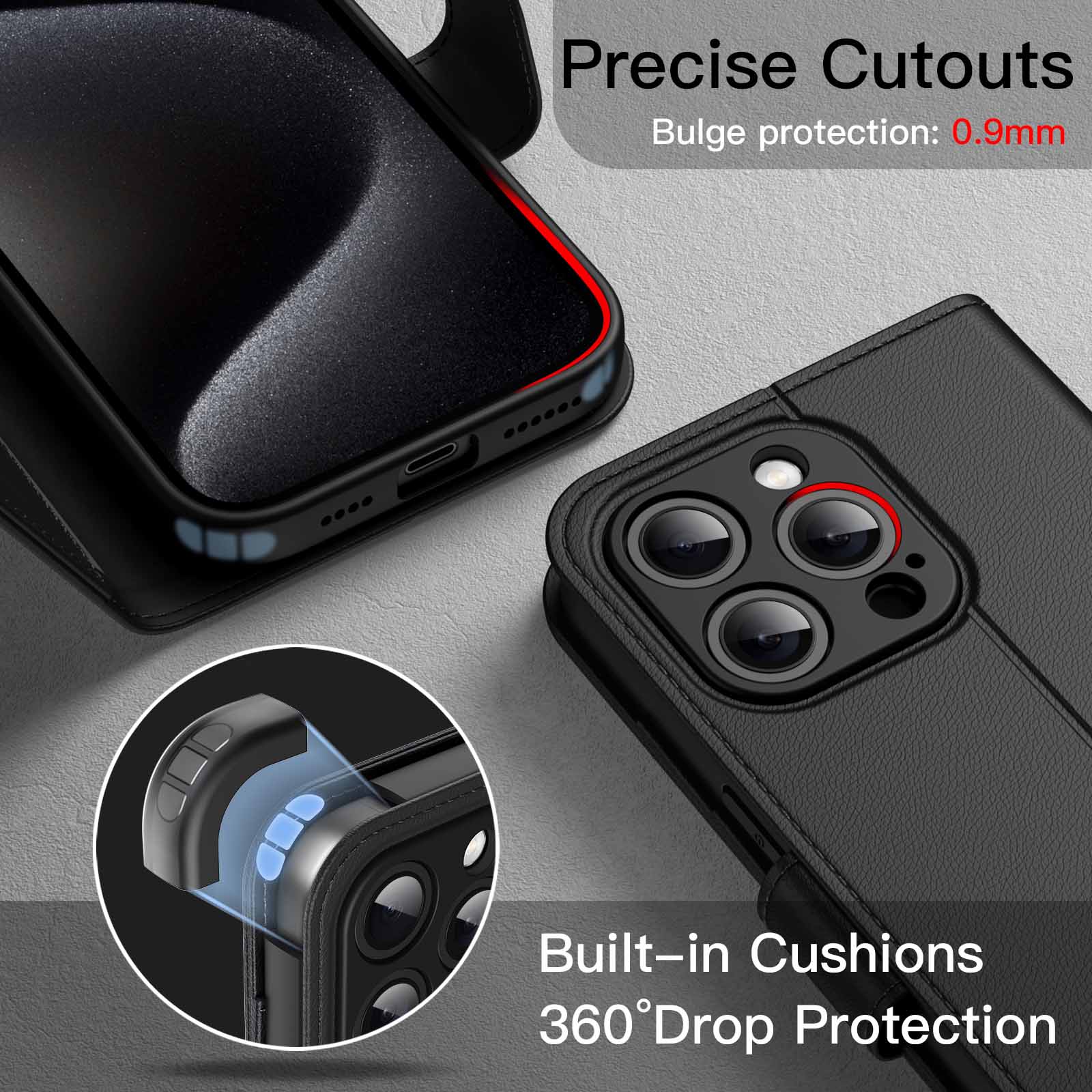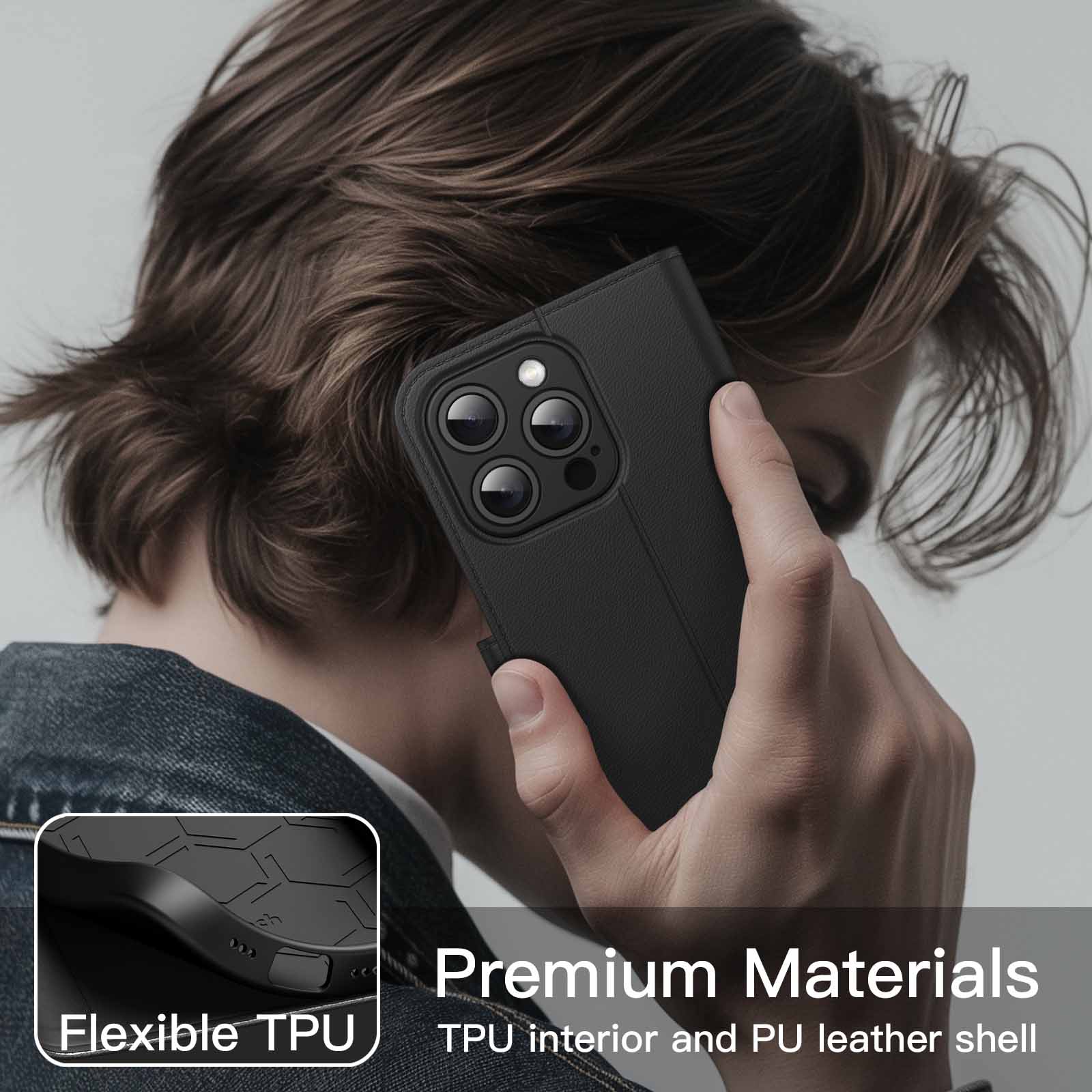 [All-Around Protection] Designed for iPhone 15 Pro Max 6.7-inch. PU leather cover and inner flexible TPU back protect your device from scratches, shocks and bumps. Premium materials ensure a comfortable grip