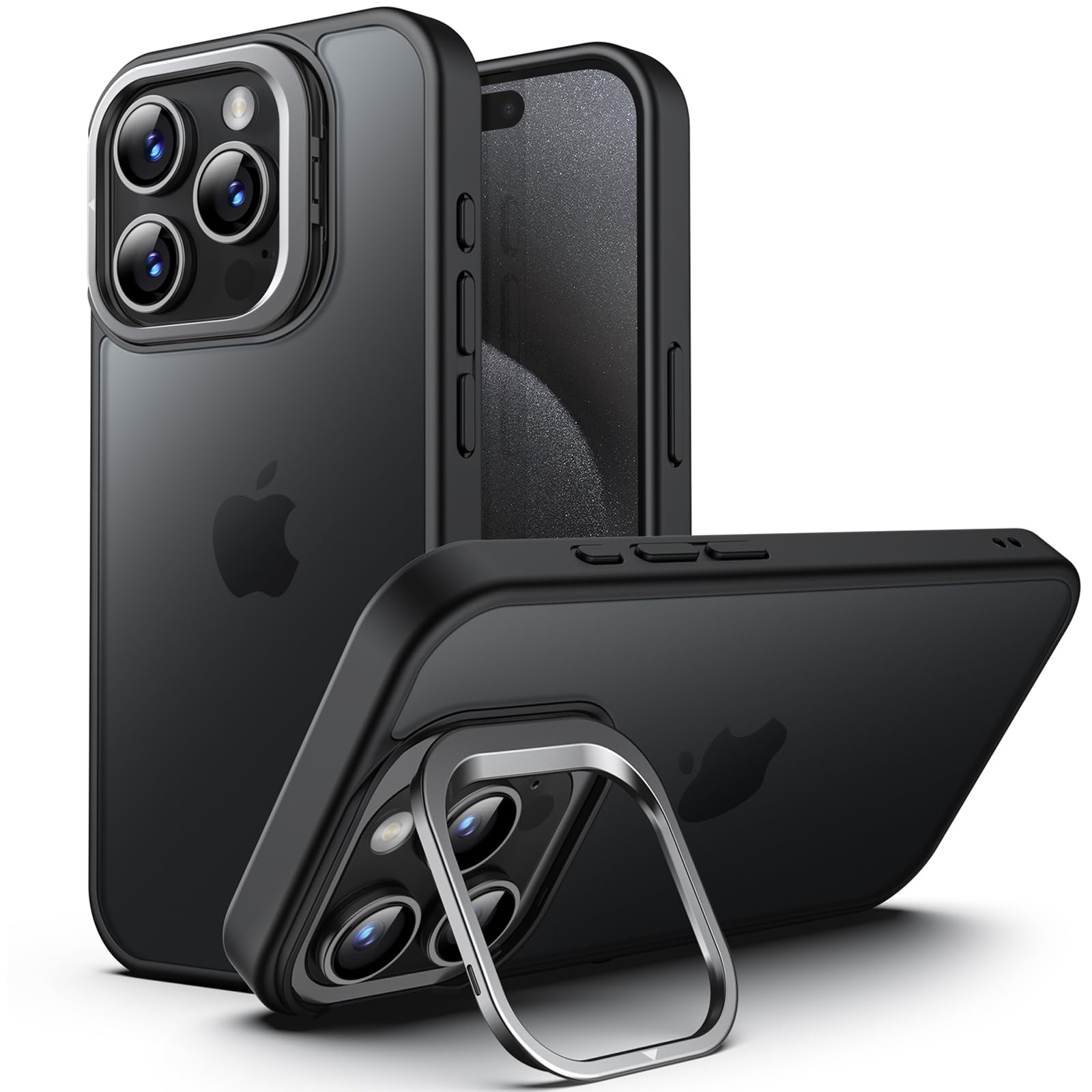 JETech Kickstand Case for iPhone 15 Pro Max 6.7-Inch, Built-in Adjustable Camera Stand, Military Grade Drop Protection, Frosted Translucent Matte Back Shockproof Phone Cover