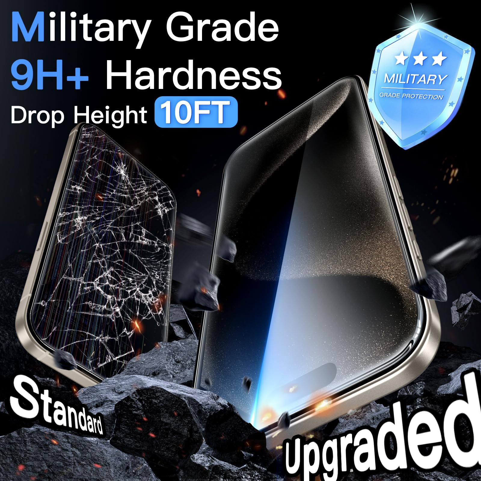 [Military Grade Drop Protection] 9H reinforced glass, more than twice as strong as standard protective film. The reinforced glass edge can effectively protect the edge of the protective film from being damaged or scratched. Military-grade protection, guarding your screen with all-round security