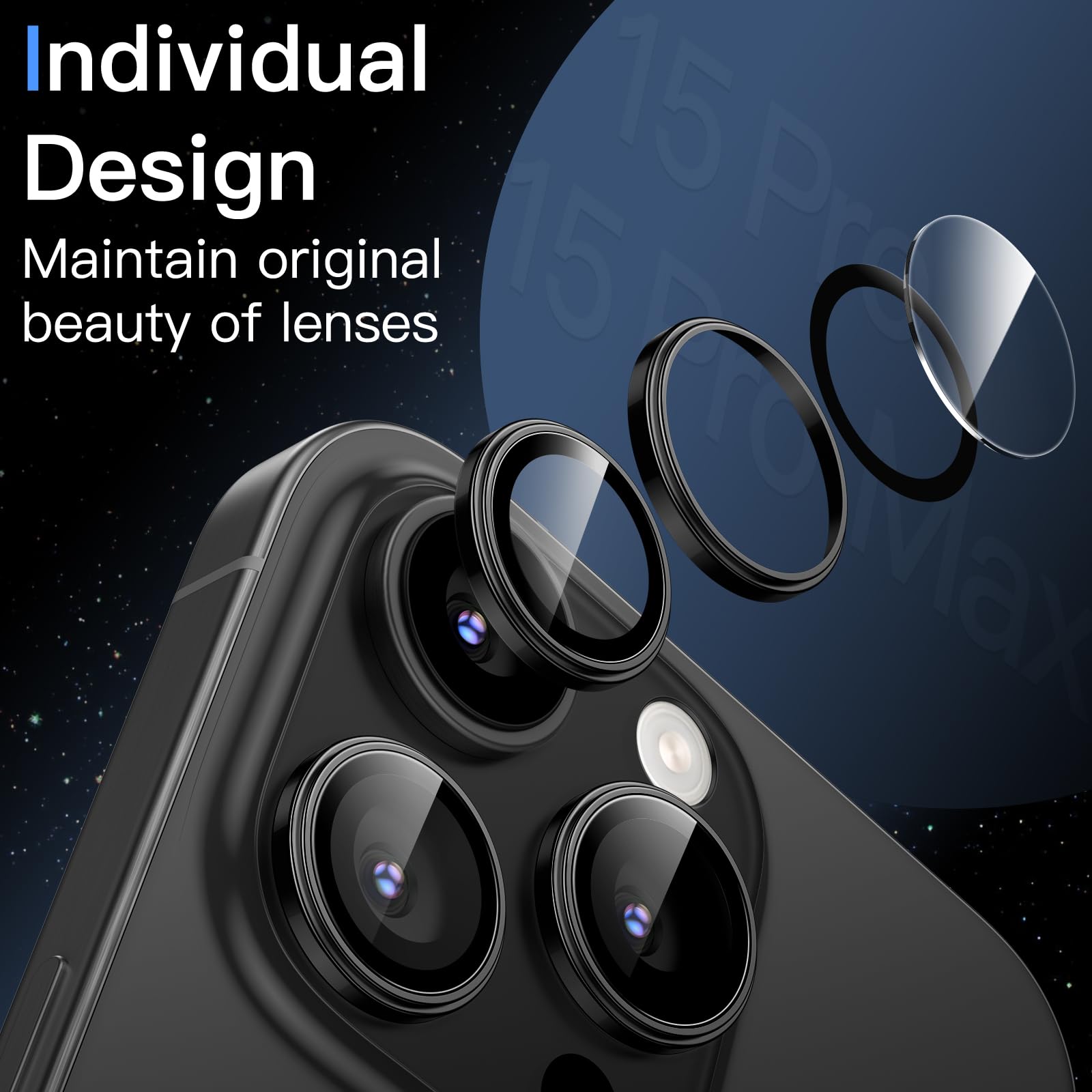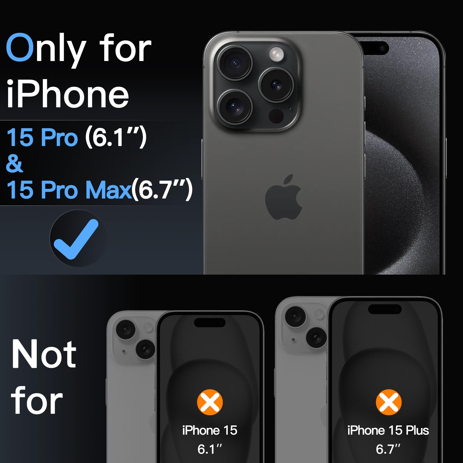 [Compatibility] Precisely fit for iPhone 15 Pro 6.1-inch and iPhone 15 Pro Max 6.7-inch. NOTE: Not for iPhone 15 / 15 Plus. Seamlessly cover the camera lens and prevent dust and water. Compatible with most phone cases