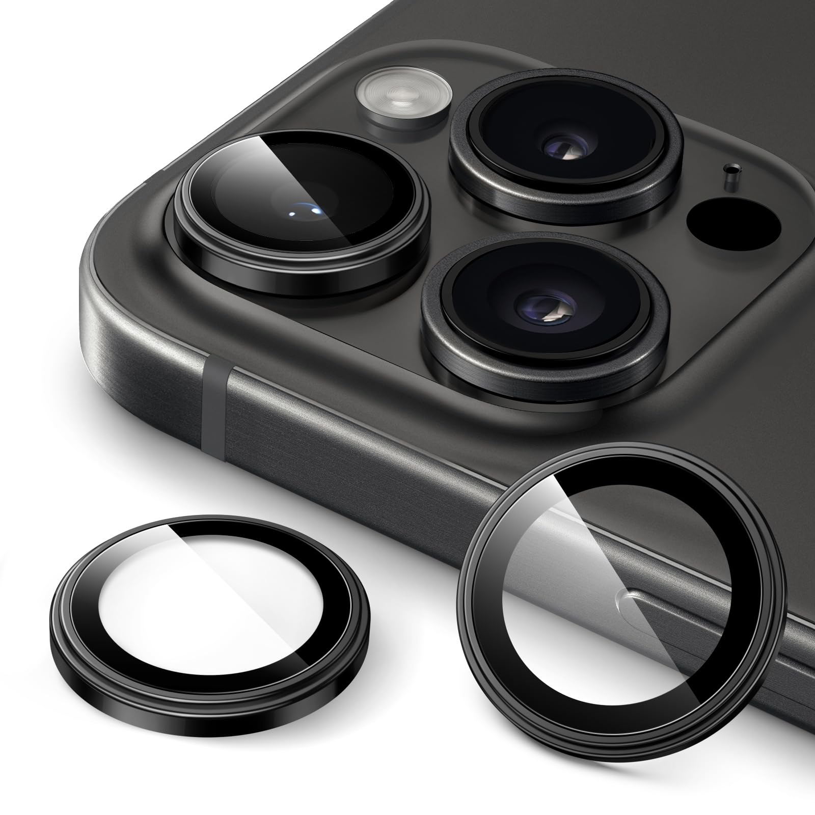 JETech Camera Lens Protector for iPhone 15 Pro 6.1-Inch and iPhone 15 Pro Max 6.7-Inch, 1:1 Invisible Fit, 9H Tempered Glass Metal Individual Ring Cover, HD Clear, 1 Set