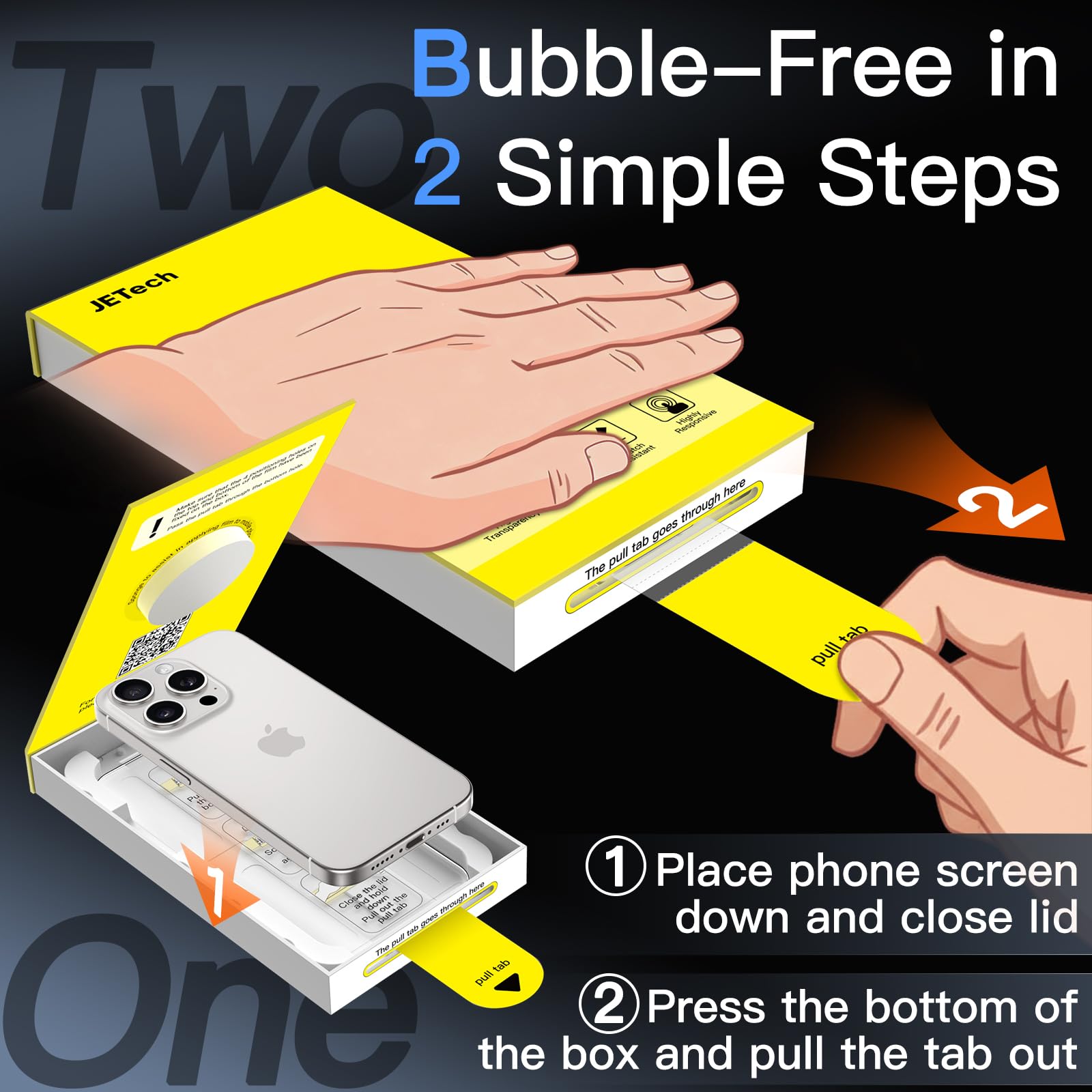 • [Super Easy Installation] Simply snap your phone upside down onto the alignment tool, pull out the pull-tab, and the screen protector automatically aligns itself for a quick, bubble-free adhesion