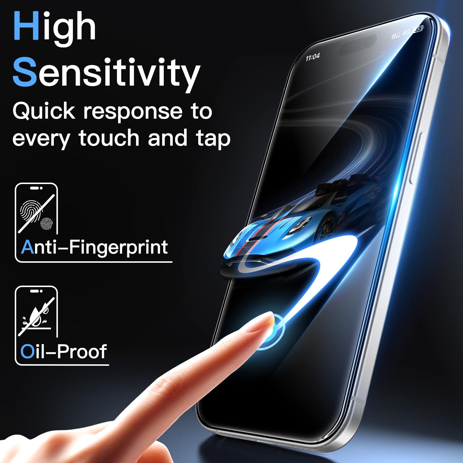 • [Anti-Fingerprint & Oil-Proof] The hydrophobic and oleophobic coating prevents fingerprints, oil residue and sweat from gathering on the screen. Always maintain a clean screen environment for you