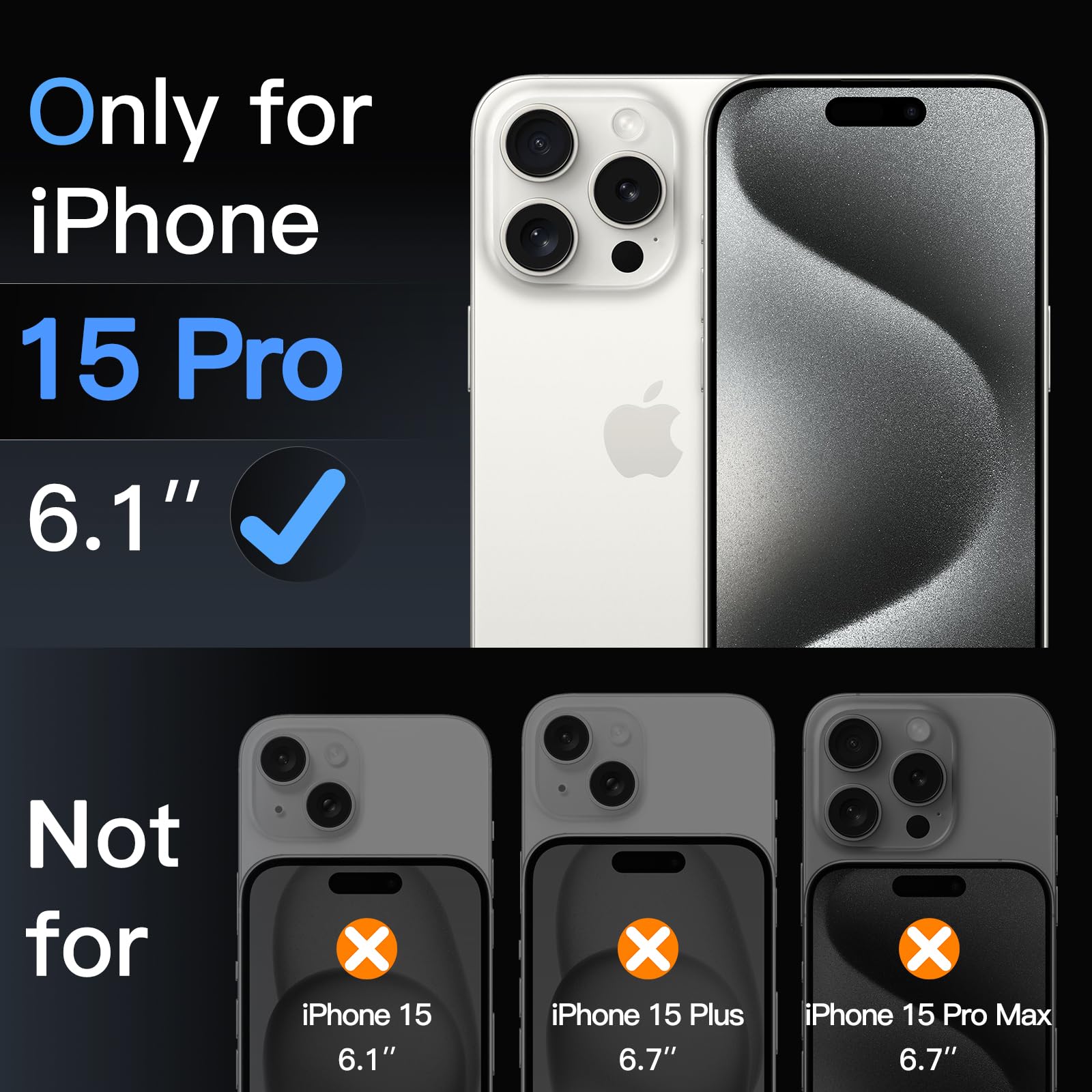 • [Compatibility] Designed for iPhone 15 Pro 6.1-inch for great protection. NOTE: Not for iPhone 15 / 15 Plus / 15 Pro Max. Please kindly check your device model before purchasing. Designed with thoughtful 2.5D curved edges, compatible with most phone cases