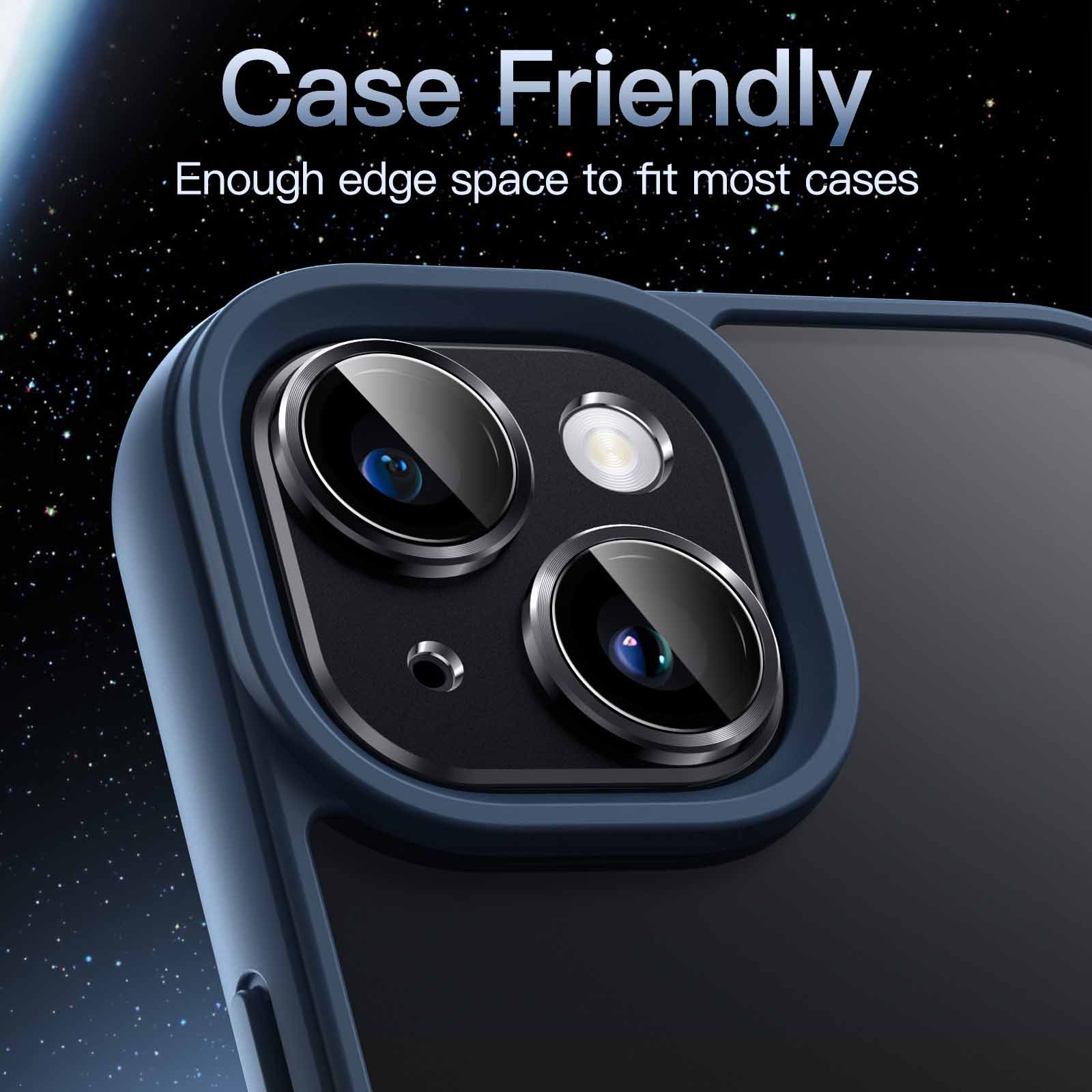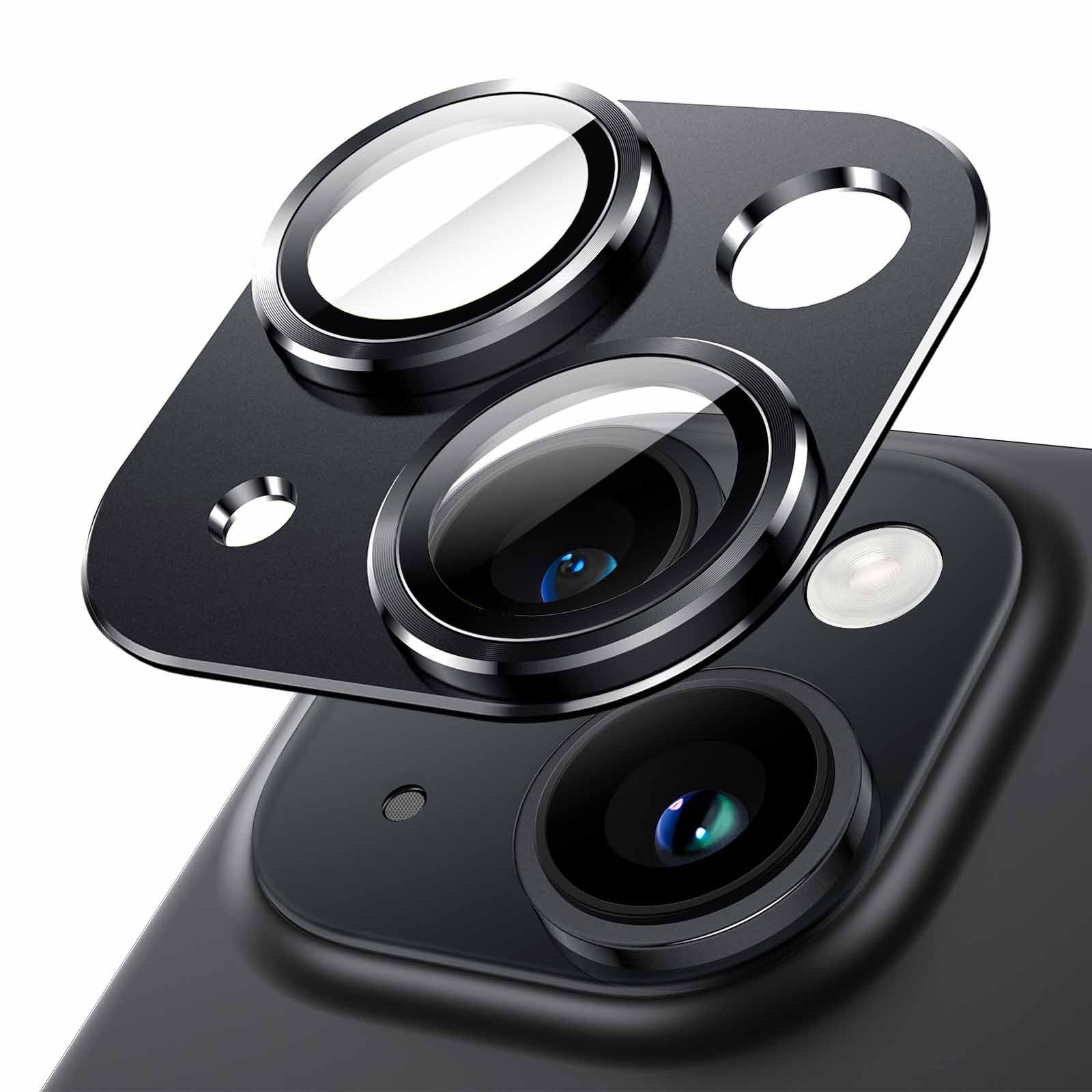 [Snug-Fit] Adopt 1:1 precise cutting to perfectly fit the camera lens of iPhone 15 6.1-inch and iPhone 15 Plus 6.7-inch. Only 0.12 mm higher than original profile and leave enough edge space to work well with most phone cases