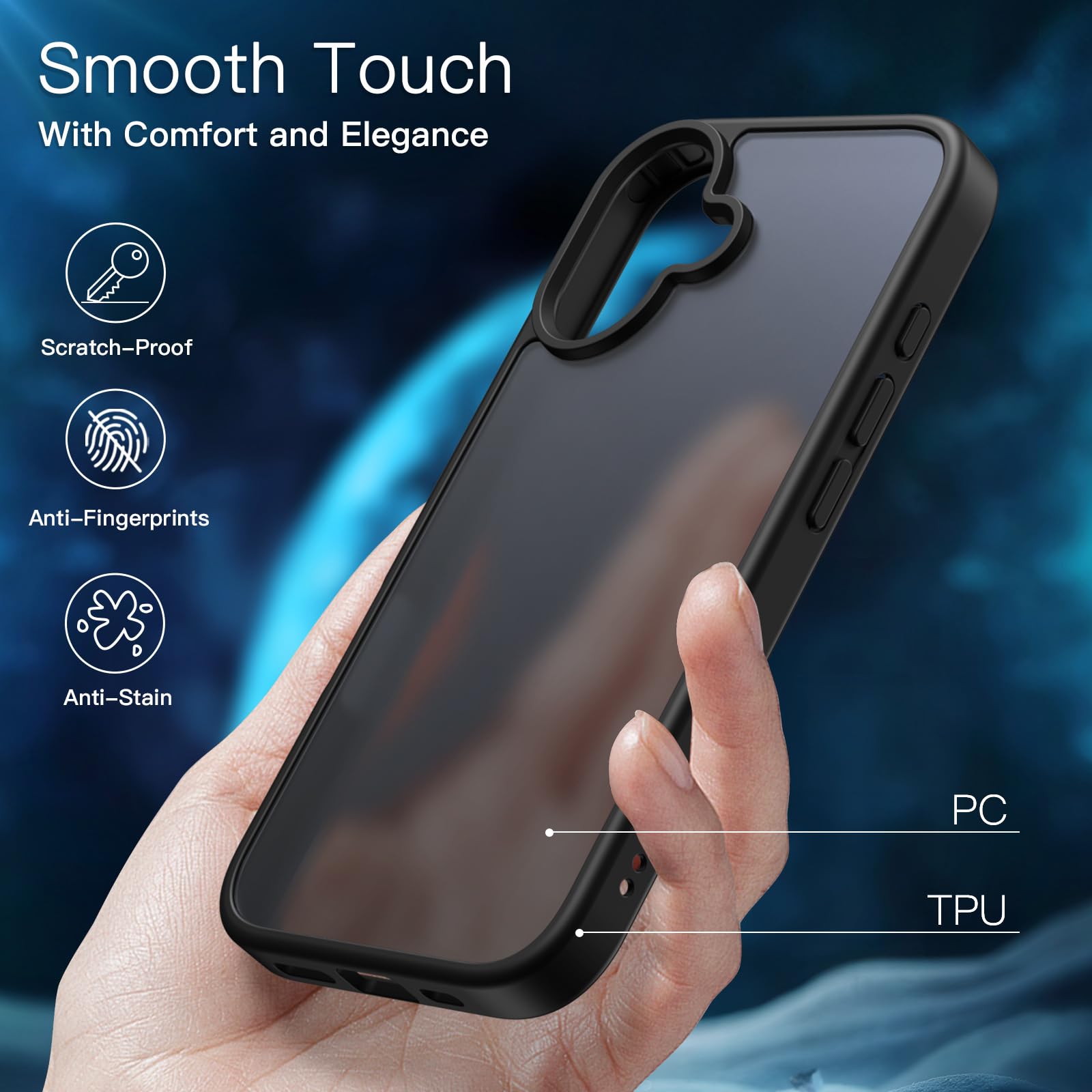 • [Translucent Design] The hybrid case with flexible TPU frame and hard PC matte back offers you a smooth touch feeling. No annoying fingerprints and oil smudges. Meanwhile, the phone’s delicate logo can be shown off