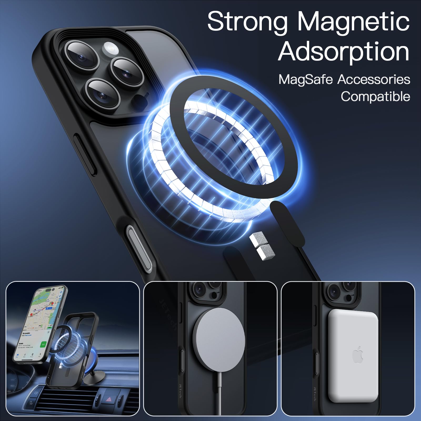 JETech Magnetic Case for iPhone 16 Pro 6.3-Inch Compatible with MagSafe, Translucent Matte Back Slim Shockproof Phone Cover