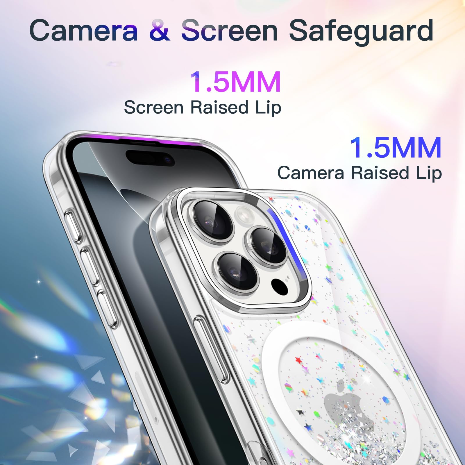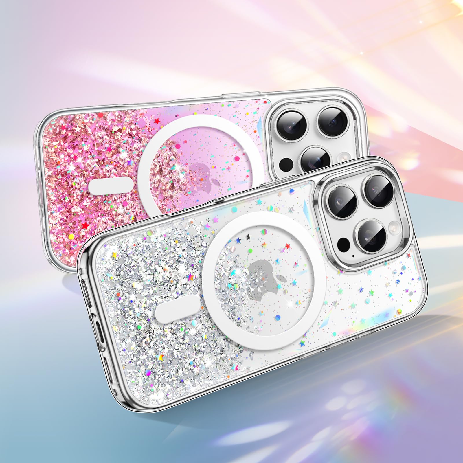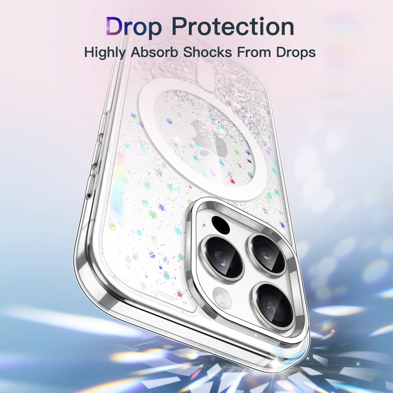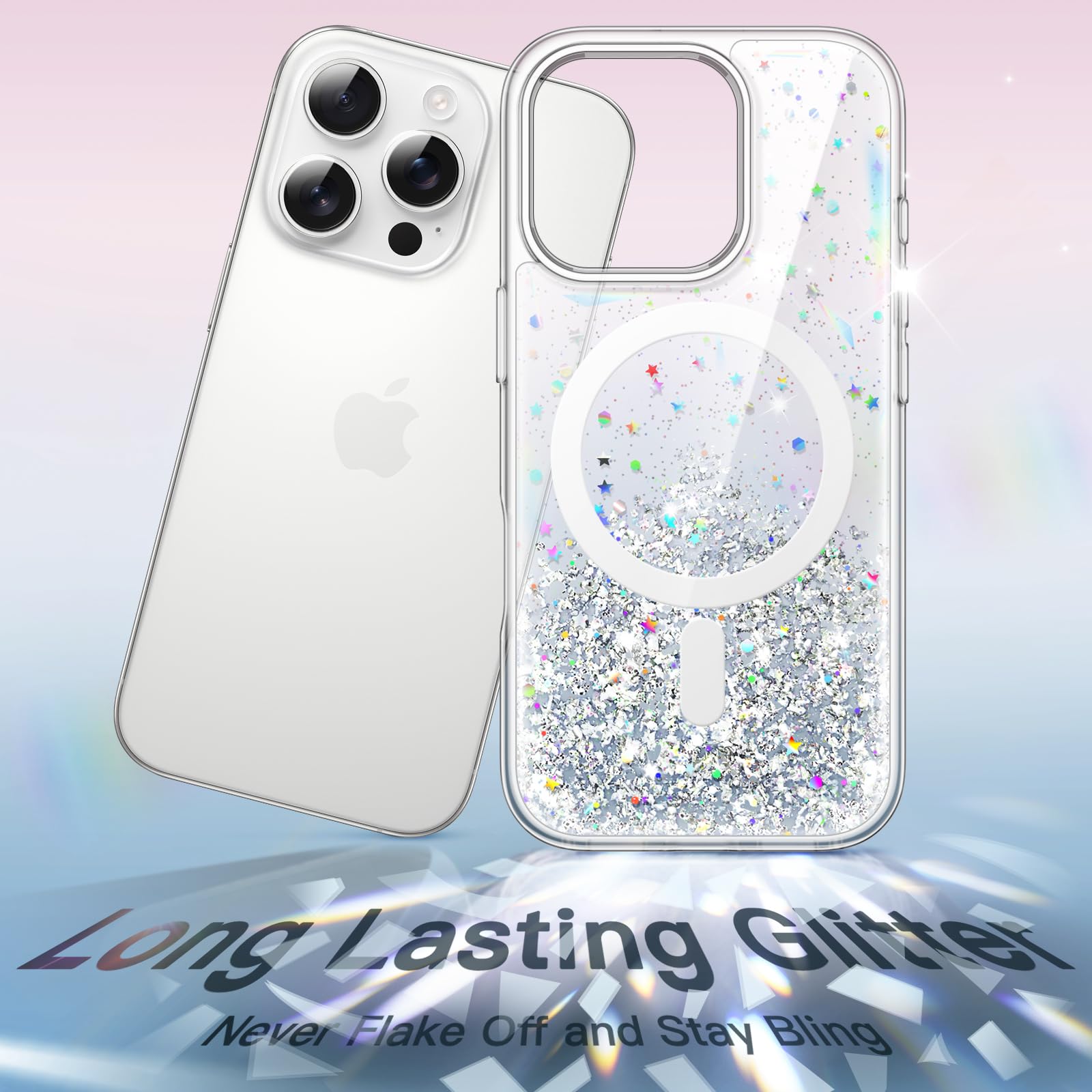 [Long Lasting Glitter] NOTE: The glitter cannot flow. The embedded eye-catching silver foil will never flake off and stay bling. The flat and comfortable back shiny design can show special twinkle effects from different angles, making your phone more attractive and trendy