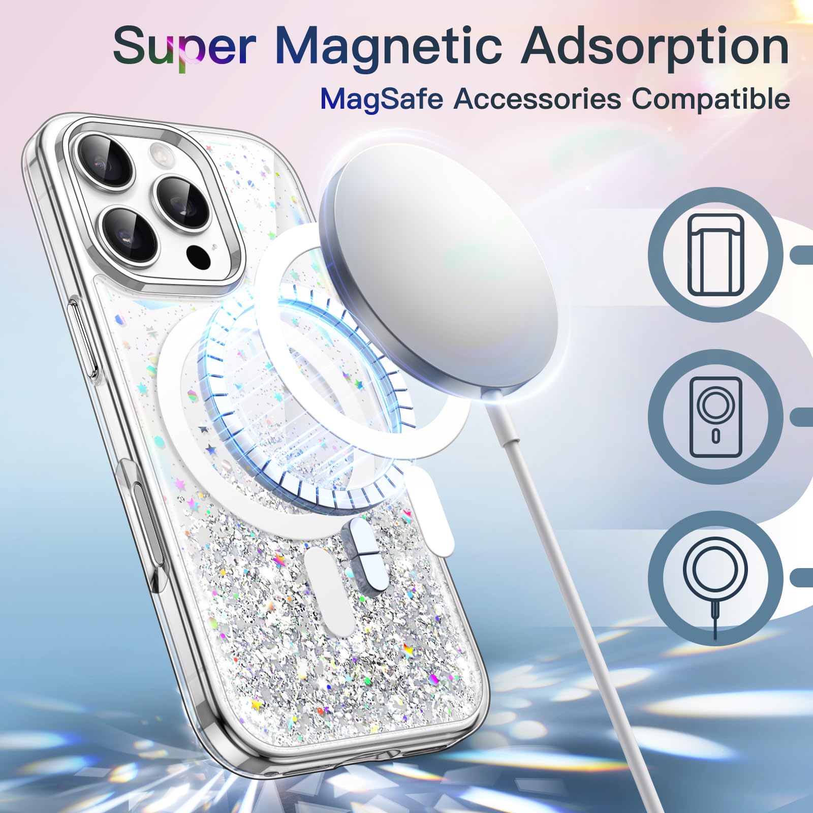 [Super Magnetic Adsorption] Strongly attach to the charger magnetically. Once snap on, never sliding. Compatible with MagSafe accessories, such as wallet, ring holder and power bank