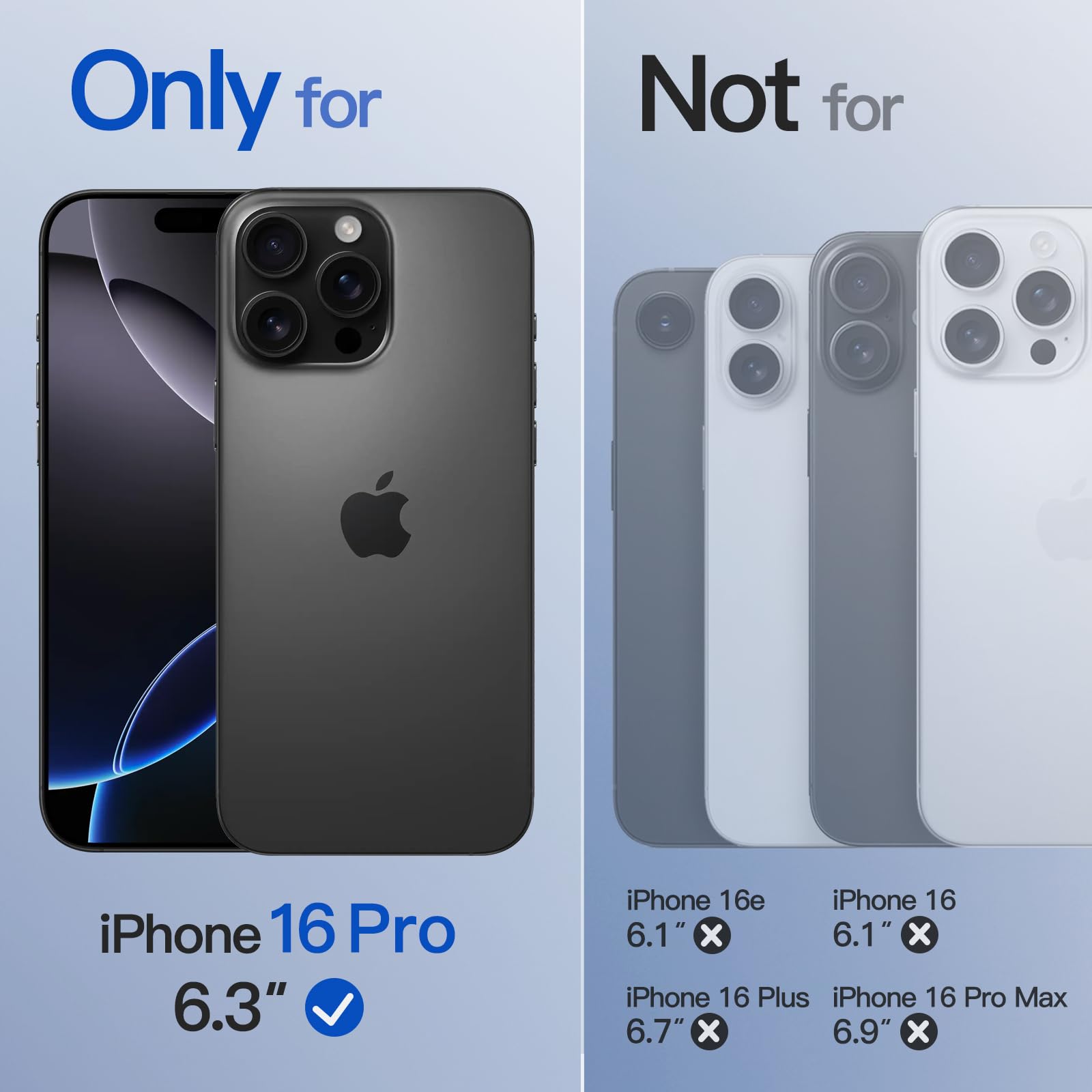 [Perfectly Fit] Designed for iPhone 16 Pro 6.3-inch. NOTE: Not for iPhone 16 / 16 Plus / 16 Pro Max. The perfectly aligned cutouts allow full access to the camera, speaker, buttons and other ports