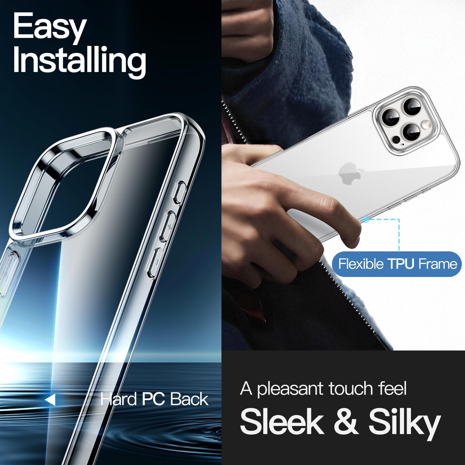 [Clear Back & Protective] The phone case is made of flexible TPU frame and hard PC back, protecting your phone from drops and scratches. And you can always admire original beauty of your phone through the anti-yellowing back