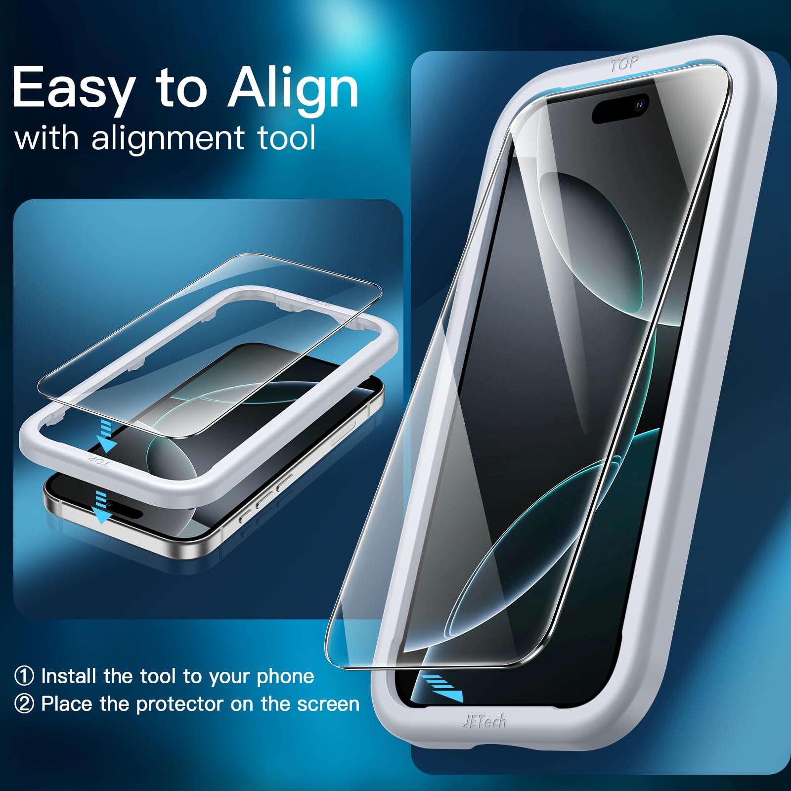 [5-in-1 Full Protection] There are 2 pack screen protectors with an alignment tool, 2 pack camera lens protectors and a bumper case, providing all-around protection for your phone. Easy installation with included accessory kits