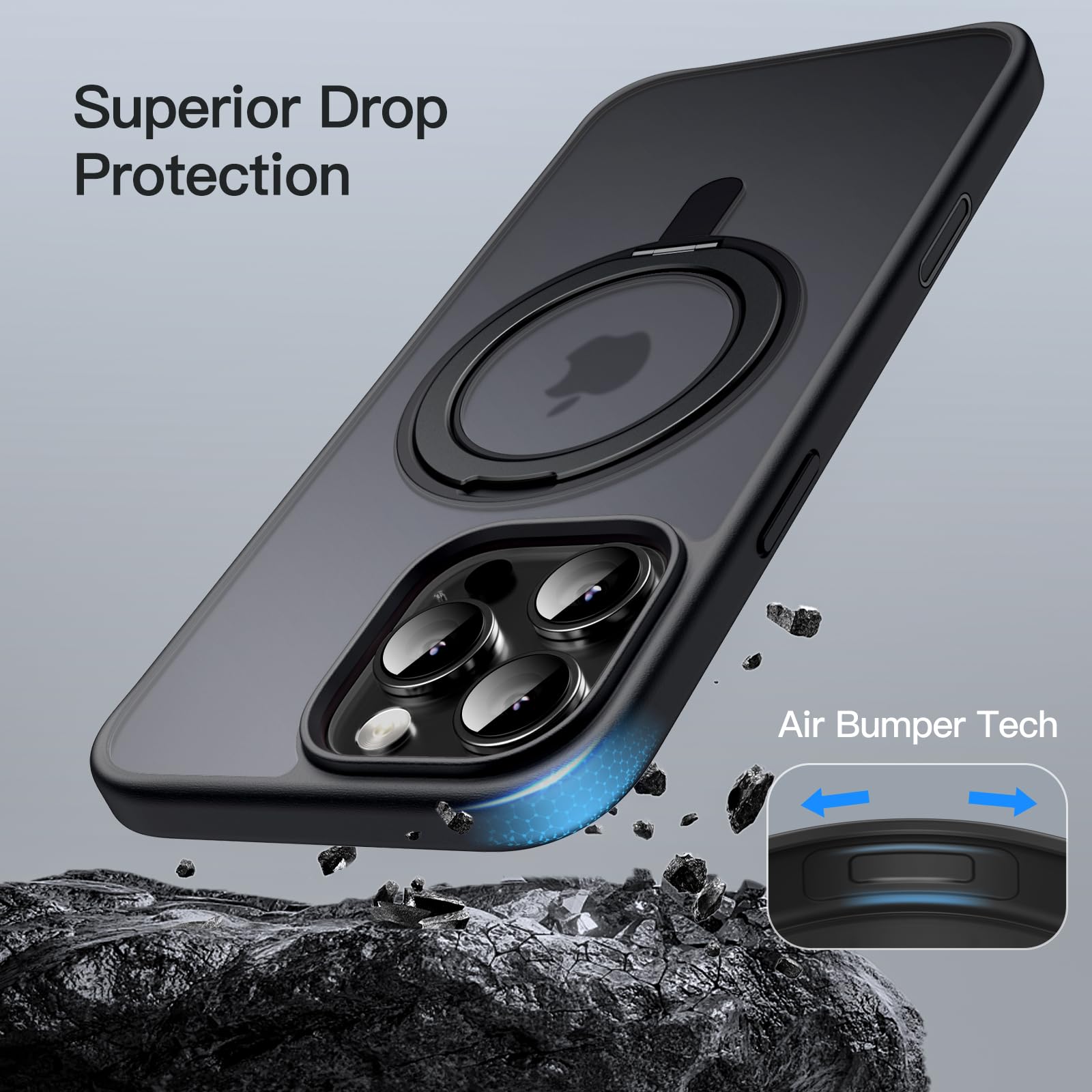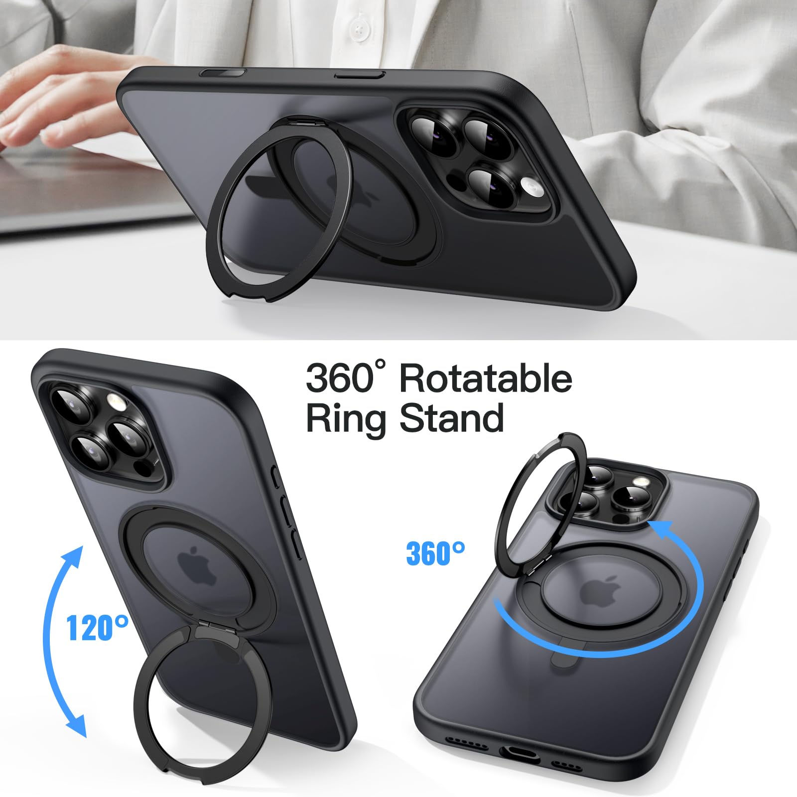 • [360 Degree Rotatable Ring Stand] The case has 360 degree rotatable ring stand that prop up various vertical and horizontal positions and you can adjust the angle as per your daily needs. Meanwhile, the rotatable ring stand undergoes over 3000 open/close tests throughout the manufacturing process to provide you with quality assurance