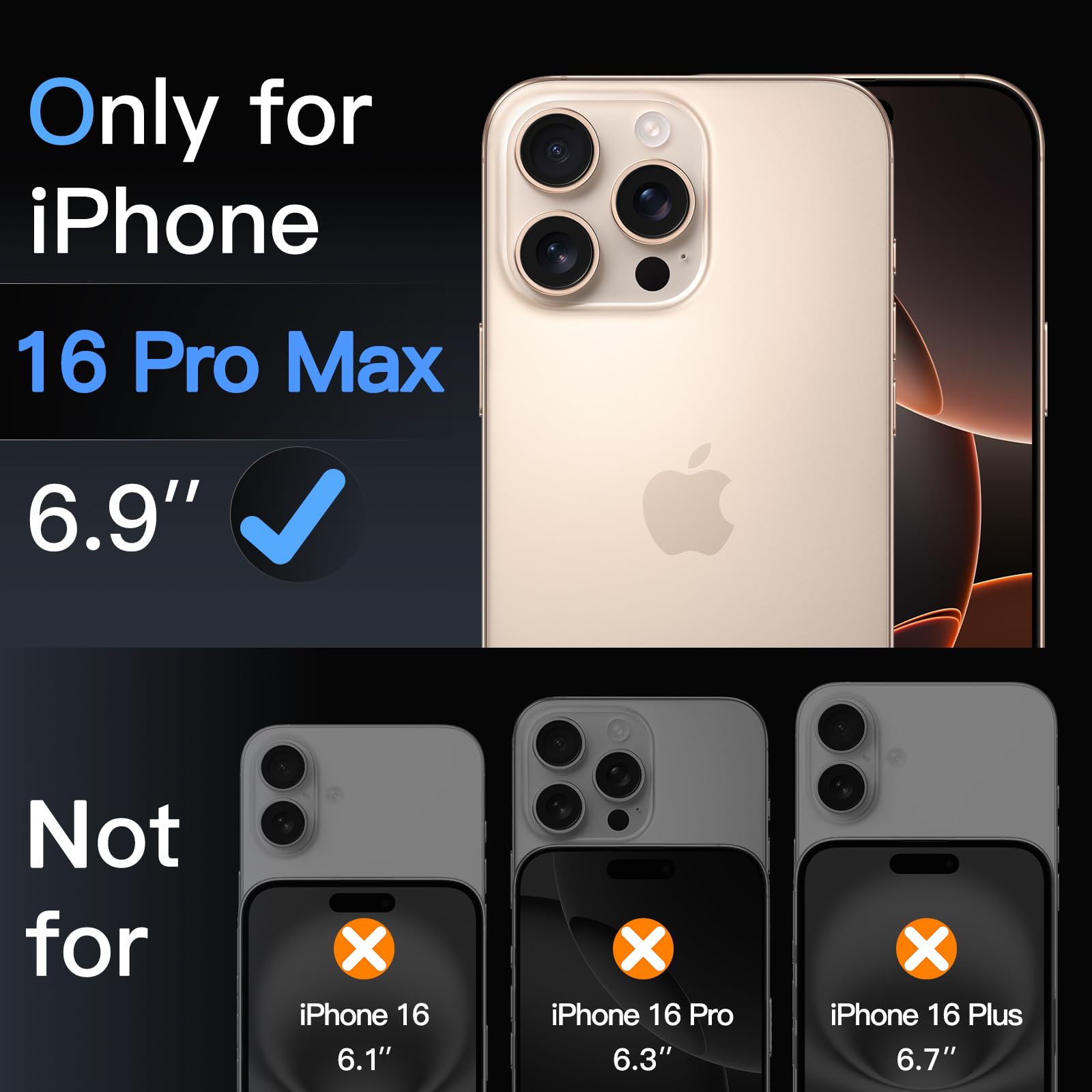[Precise Fit] Designed for iPhone 16 Pro Max 6.9-inch for great protection. NOTE: Not for iPhone 16 / 16e / 16 Plus / 16 Pro. 2.5D curved edges design, compatible with most cases