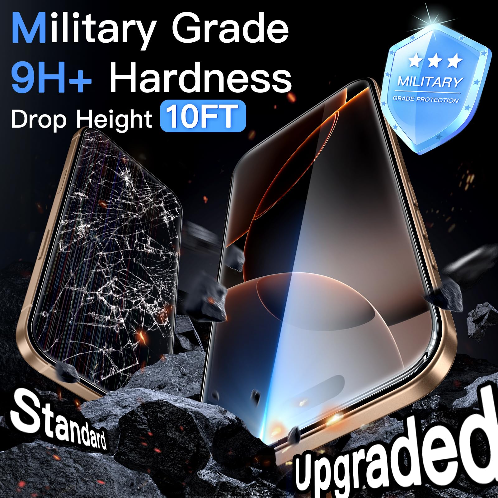 [Military Grade Drop Protection] 9H reinforced glass, more than twice as strong as standard protective film. The reinforced glass edge can effectively protect the edge of the protective film from being damaged or scratched. Military-grade protection, guarding your screen with all-round security