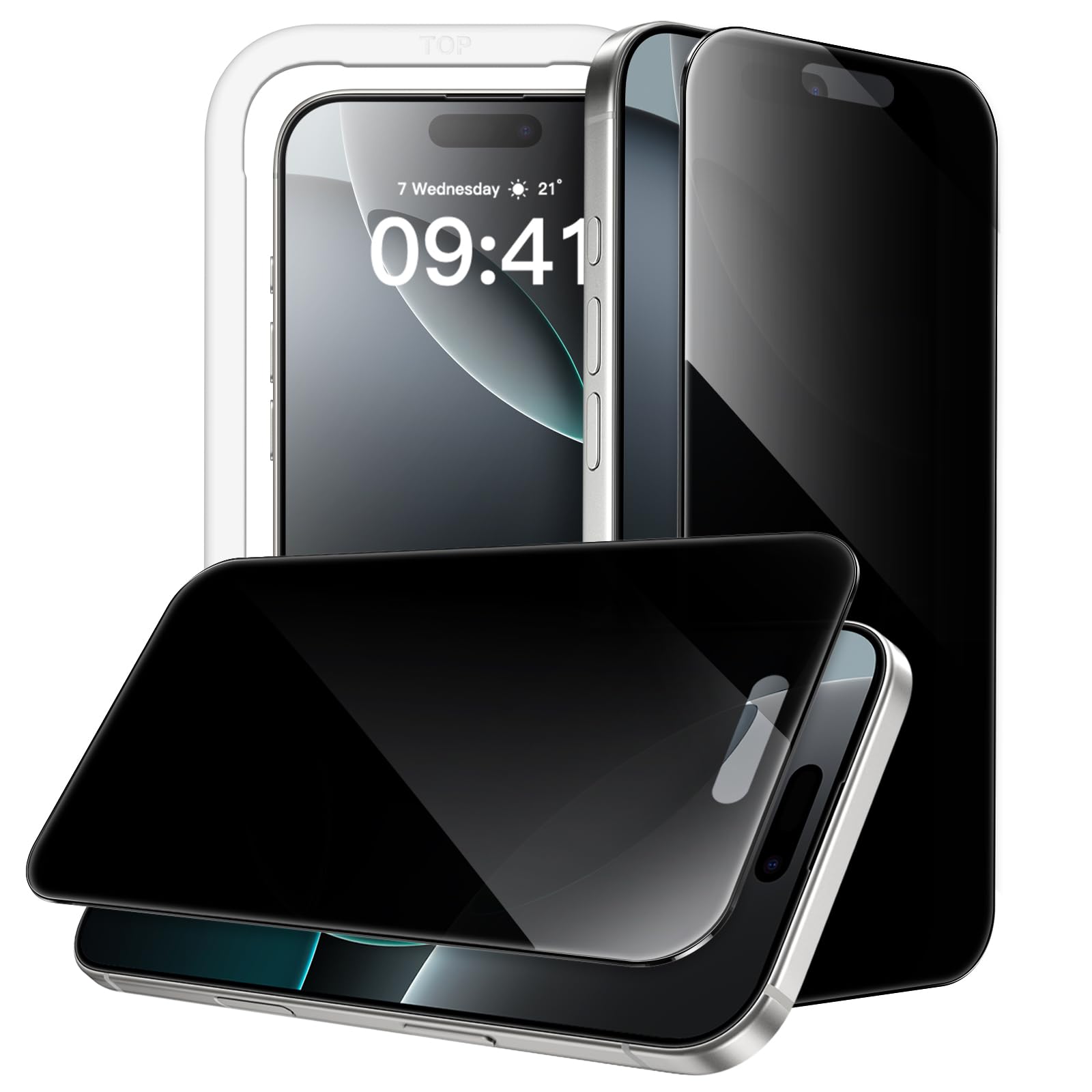 JETech 360 Degree Privacy Screen Protector for iPhone 16 Pro 6.3-Inch, 4-Way Anti-Spy Tempered Glass Film with Easy Installation Tool, 2-Pack