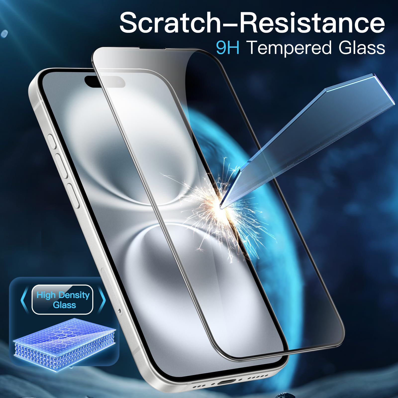 [Full Coverage Protection] Exclusively for iPhone 16 6.1-inch. NOTE: Not for iPhone 16 Plus / 16 Pro / 16 Pro Max. Maximum cover the screen edge to edge. Offer full screen protection while keeping front camera and sensor highly protective