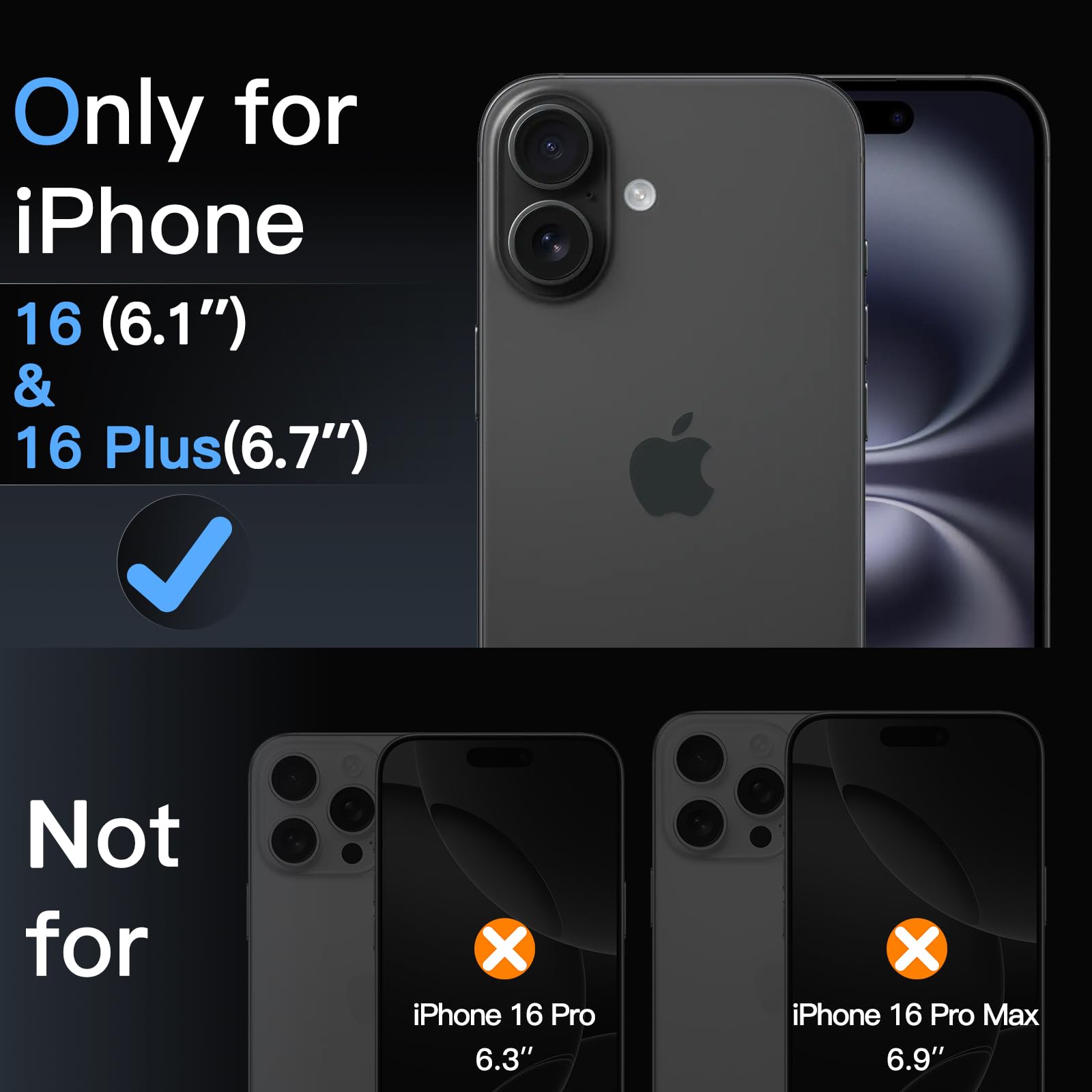 [Compatibility] Precisely fit for iPhone 16 6.1-inch and iPhone 16 Plus 6.7-inch. NOTE: Not for iPhone 16 Pro / 16 Pro Max. Seamlessly cover the camera lens and prevent dust and water. Compatible with most phone cases
