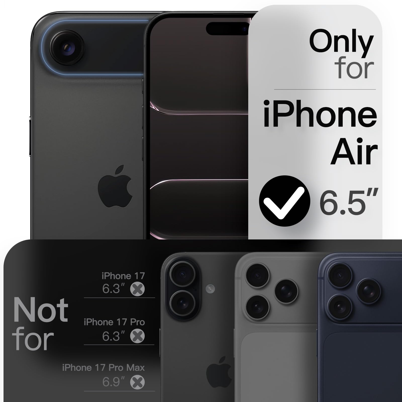 [Perfect Fit & Full Protection] Especially designed for iPhone 17 Air 6.5-Inch. NOTE: Not for iPhone 17 / 17 Pro / 17 Pro Max. The raised edges effectively protect the screen and camera during daily drops and bumps