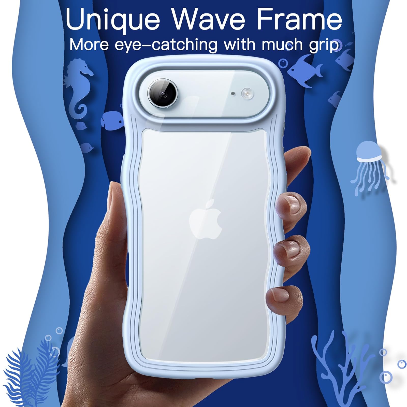 JETech Wavy Case for iPhone 17 Air, Cute Wave Frame Curly Shape Shockproof Phone Cover for Women and Girls, Clear Hard PC Back, 6.5-Inch Display