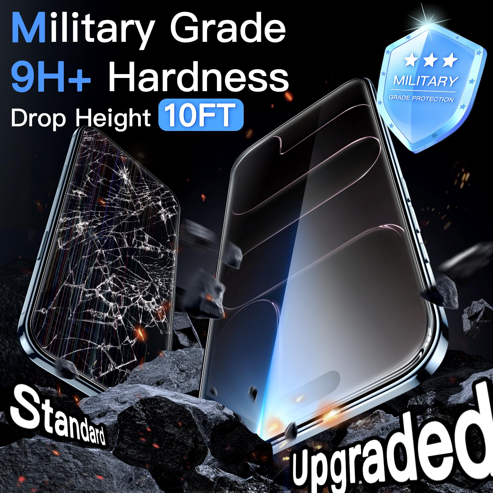 • [Military Grade Drop Protection] 9H reinforced glass, more than twice as strong as standard protective film. The reinforced glass edge can effectively protect the edge of the protective film from being damaged or scratched. Military-grade protection, guarding your screen with all-round security