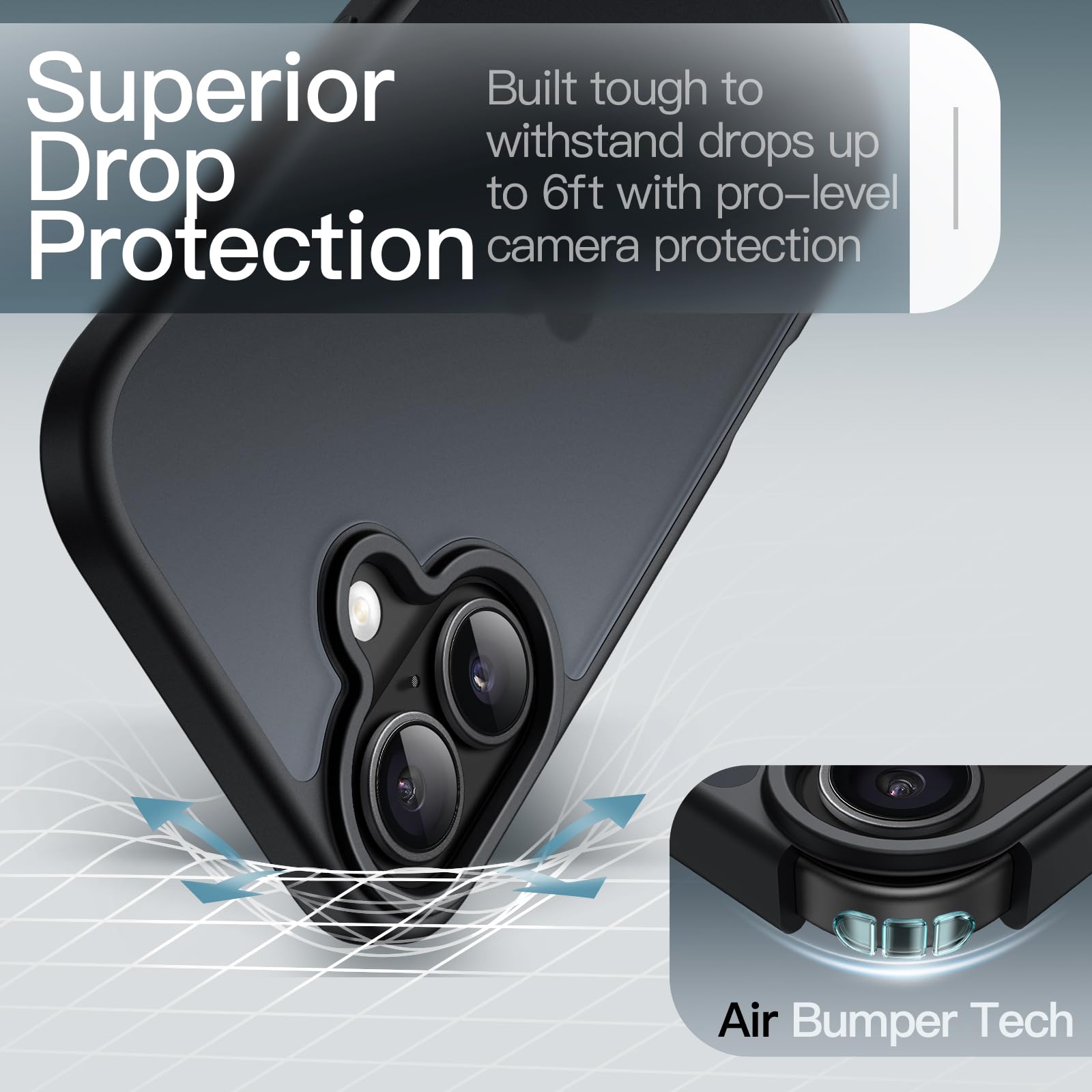 • [Military Grade Protection] This case is certified as military-grade shockproof for a 6 feet drop test, and is specially designed with shock-absorbing corner cushions to help protect your phone against severe damage