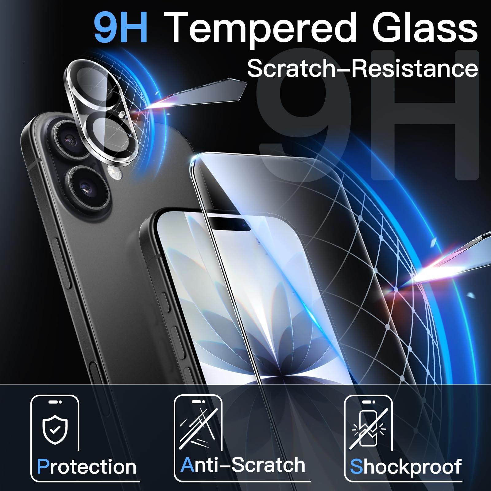 [Premium Tempered Glass] Both screen protector and camera lens protector are built with 9H hardness material, offering HD clarity and ultra-responsive touch like a bare phone, while protecting the screen and lens from daily scratches