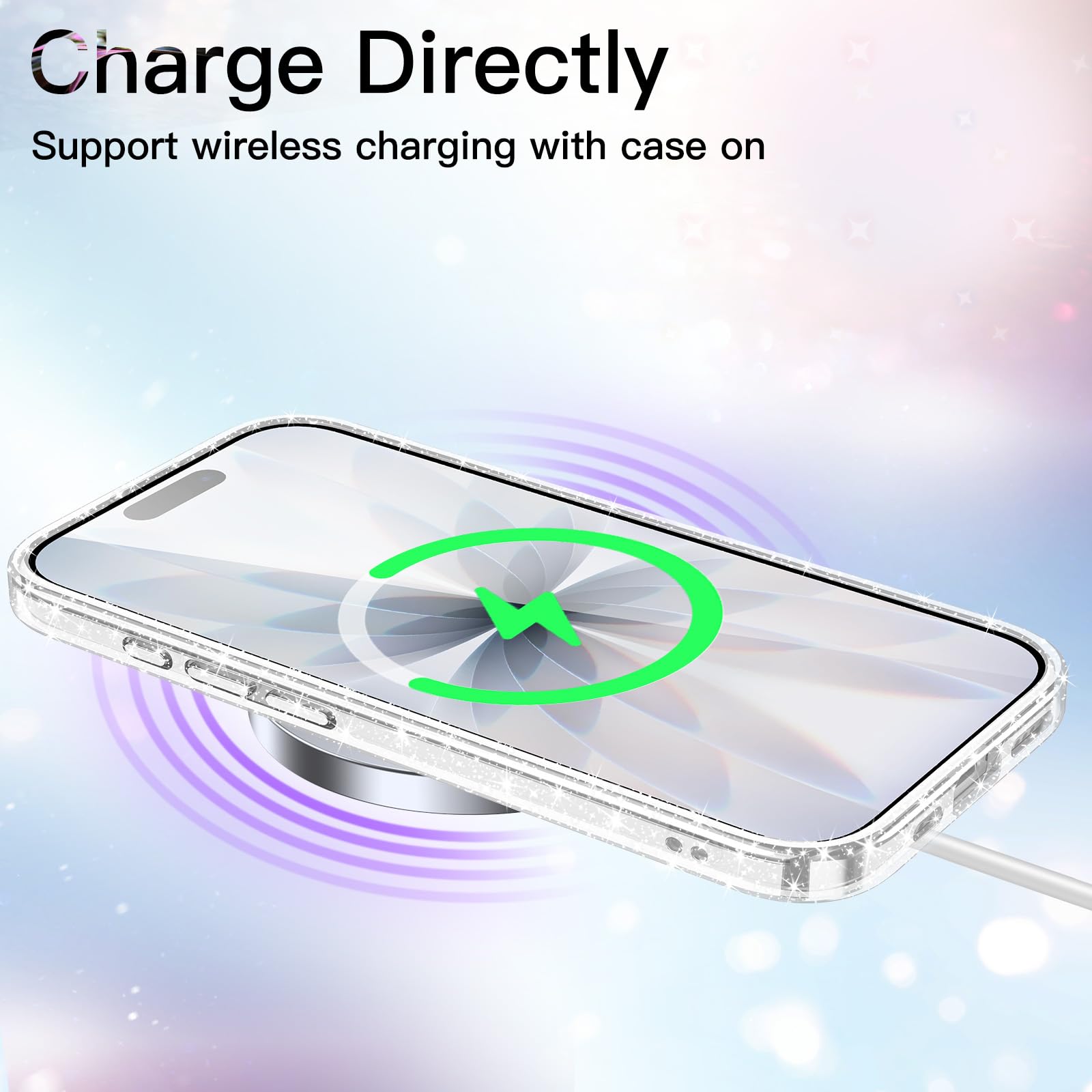 • [Long-Lasting Glitter] Designed for iPhone 17 6.3 inch for women and girls. NOTE: Not for iPhone 17 Air / 17 Pro / 17 Pro Max. The embedded eye-catching glitters will never flake off and stay bling, making your phone more attractive and fashionable