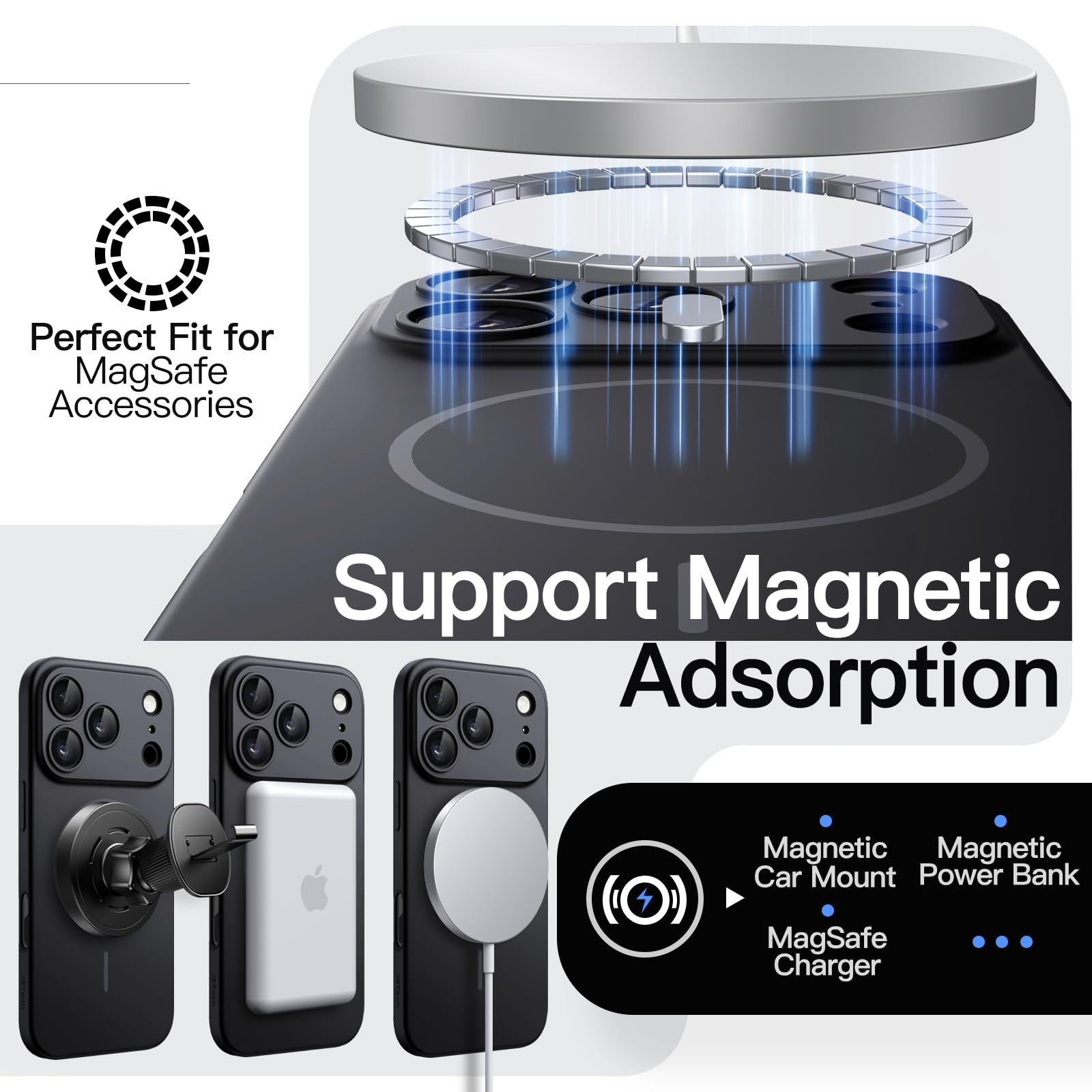 [Super Magnetic Adsorption] Built-in precision magnets ensure fast wireless charging and secure attachment, compatible with MagSafe chargers & accessories. Just snap and go-no need to remove the case during charging