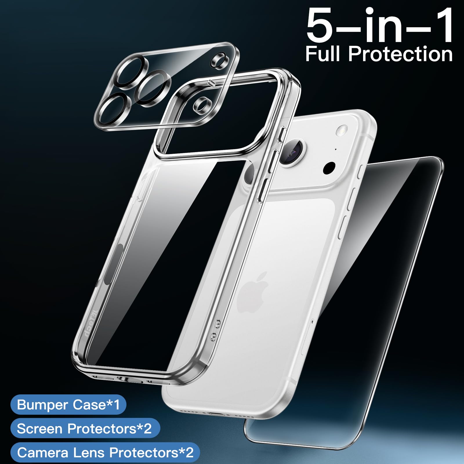 [5-in-1 Full Protection] There are 2 pack screen protectors with an alignment tool, 2 pack camera lens protectors and a bumper case, providing all-around protection for your phone. Easy installation with included accessory kits