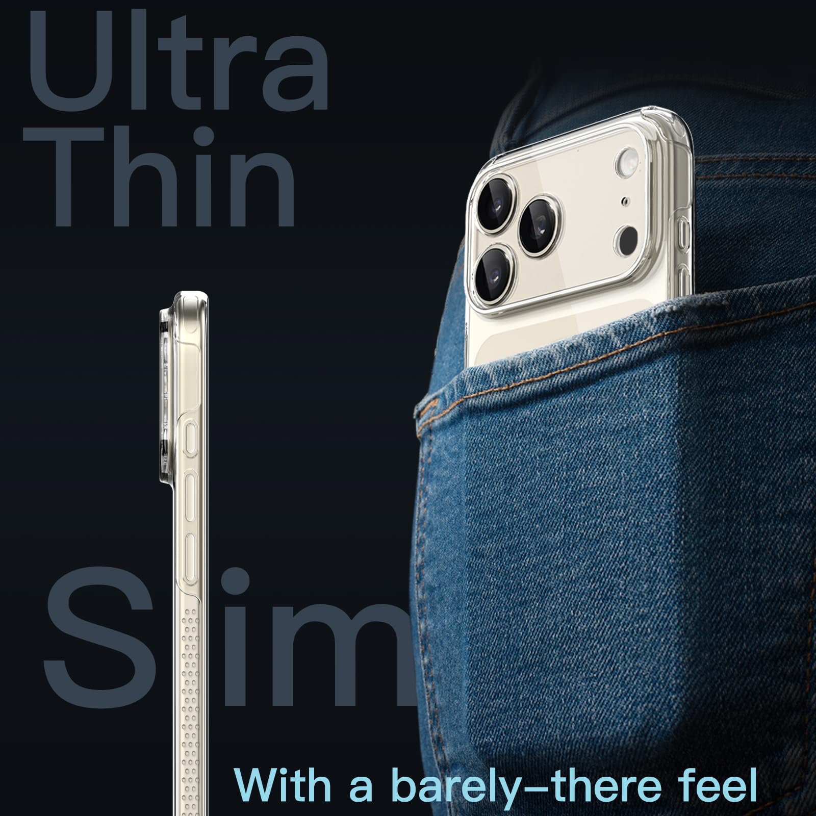 JETech Magnetic Slim Case for iPhone 17 Pro Max 6.9-Inch Compatible with MagSafe, Non-Yellowing, Anti-Slip Lightweight Clear Protective Phone Cover with Full Camera Lens Protection