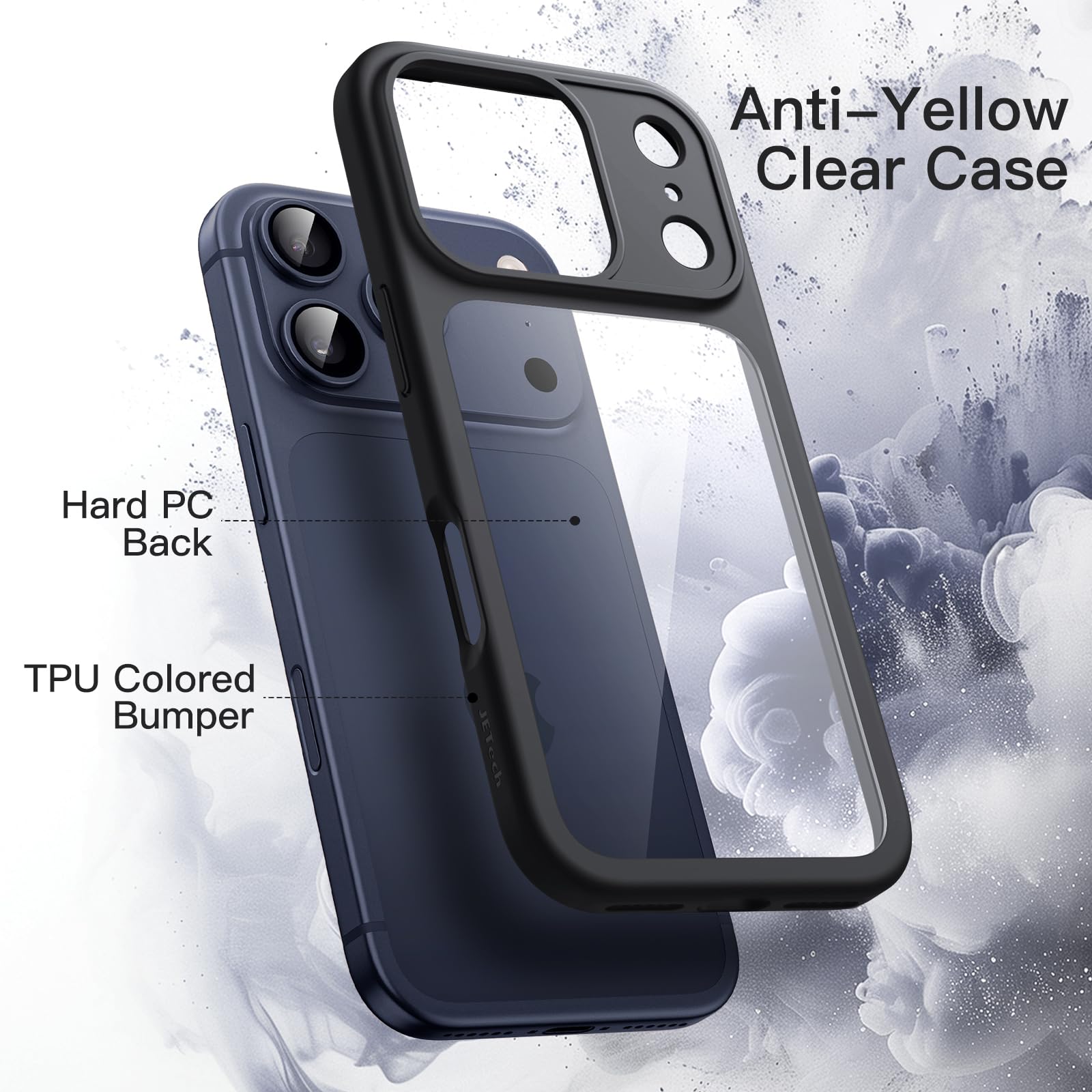 JETech Case for iPhone 17 Pro Max 6.9-Inch, Shockproof Phone Bumper Cover, Solid Color Matte TPU Frame, Anti-Scratch Clear Back