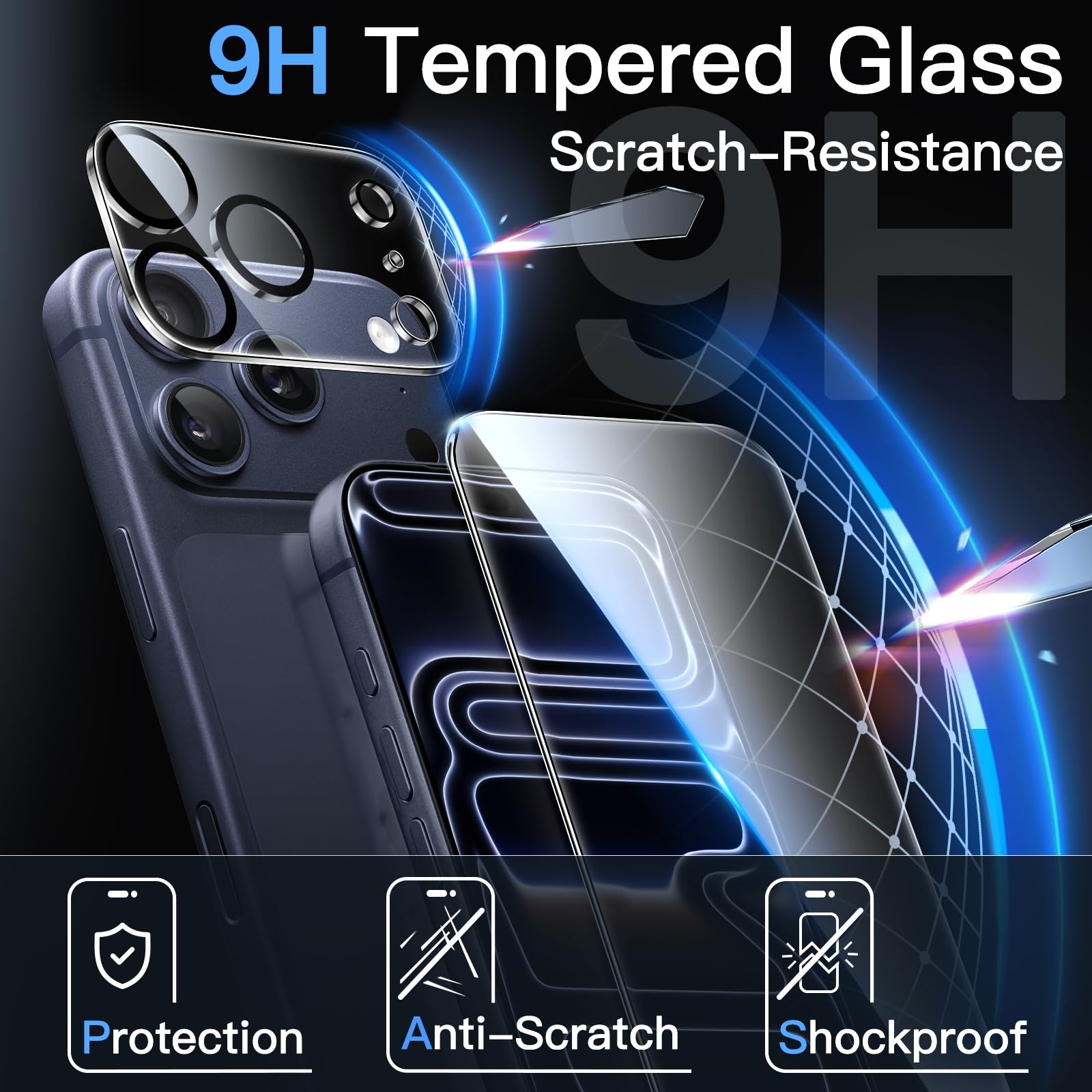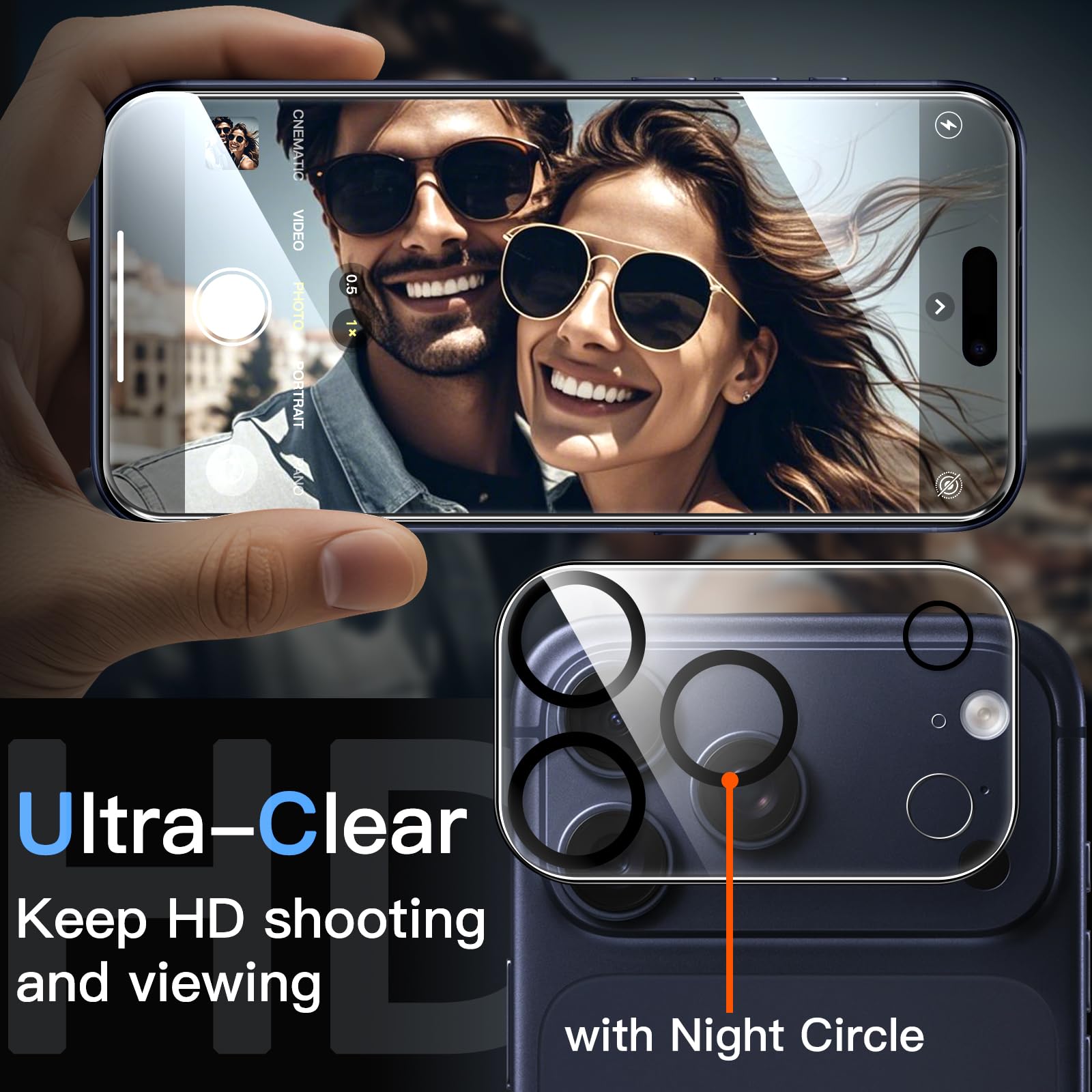 • [Premium Tempered Glass] Both screen protector and camera lens protector are built with 9H hardness material, offering HD clarity and ultra-responsive touch like a bare phone, while protecting the screen and lens from daily scratches