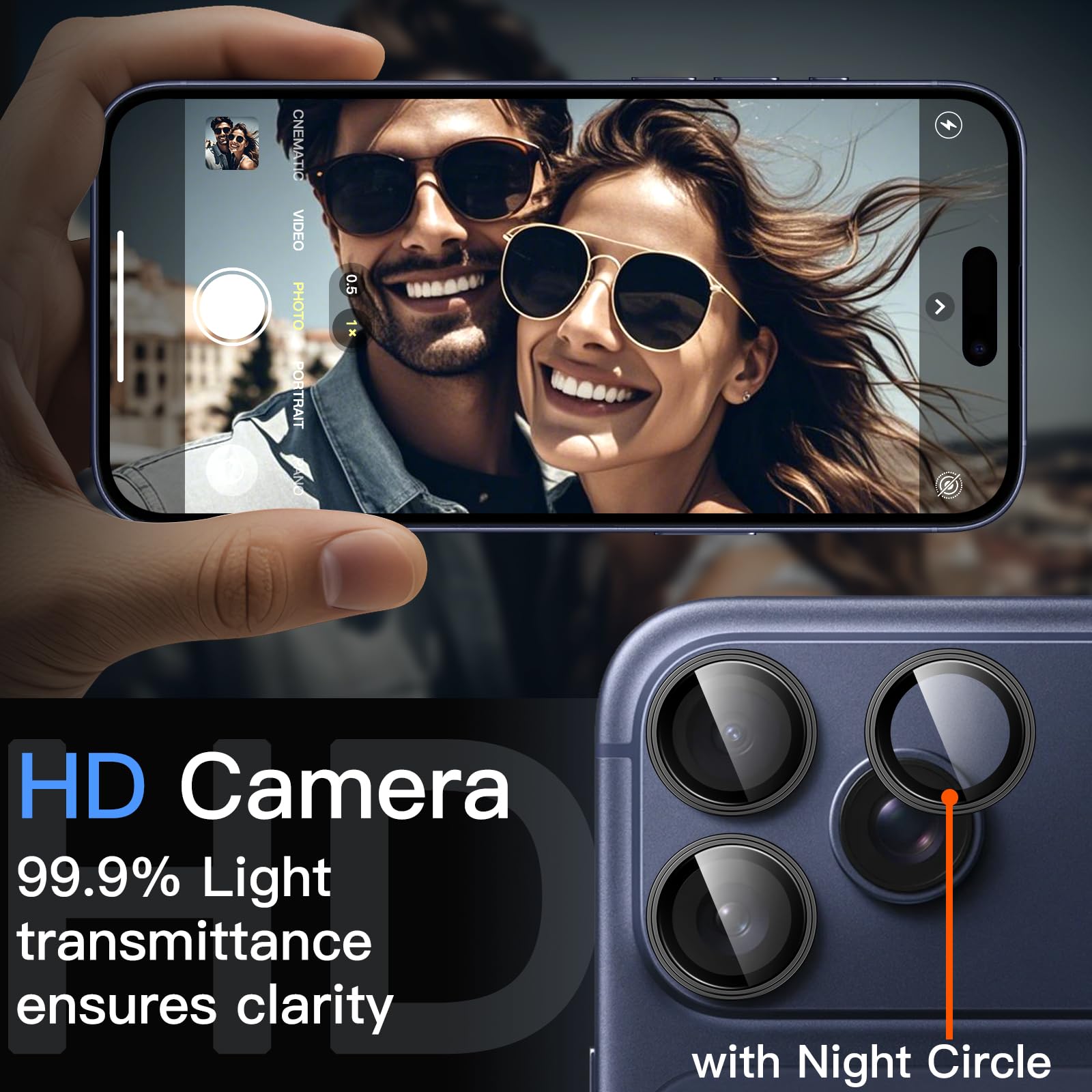 [High Definition] The glass lens protector with 99.99% light transmittance ensures the original quality of photos and videos. Moreover, the oleophobic coating effectively keeps fingerprints, sweat and oil from gathering