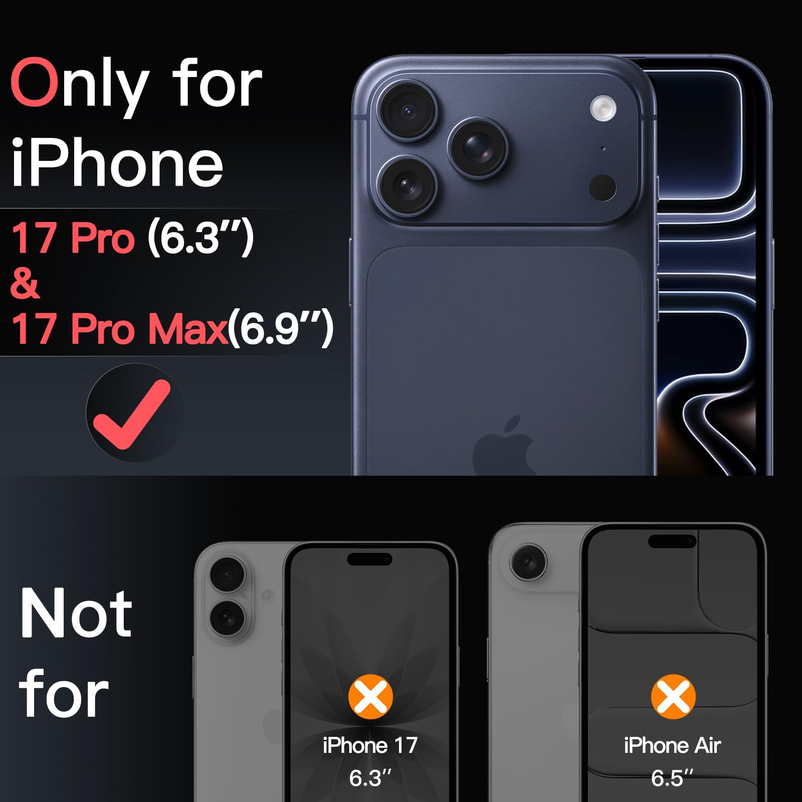 • [Compatibility] Precisely fit for iPhone 17 Pro 6.3-inch / iPhone 17 Pro Max 6.9-inch. NOTE: Not for iPhone 17 / Air. Seamlessly cover the camera lens and prevent dust and water. Compatible with most phone cases