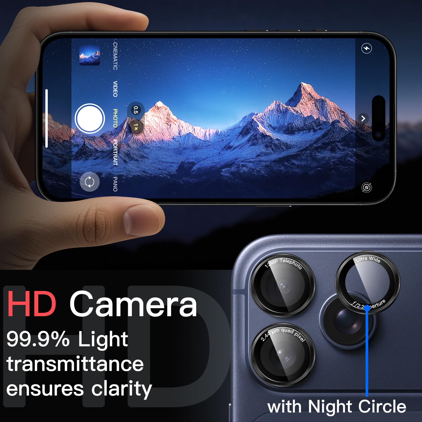 • [High Definition] The glass lens protector with 99.99% light transmittance ensures the original quality of photos and videos. Moreover, the oleophobic coating effectively keeps fingerprints, sweat and oil from gathering