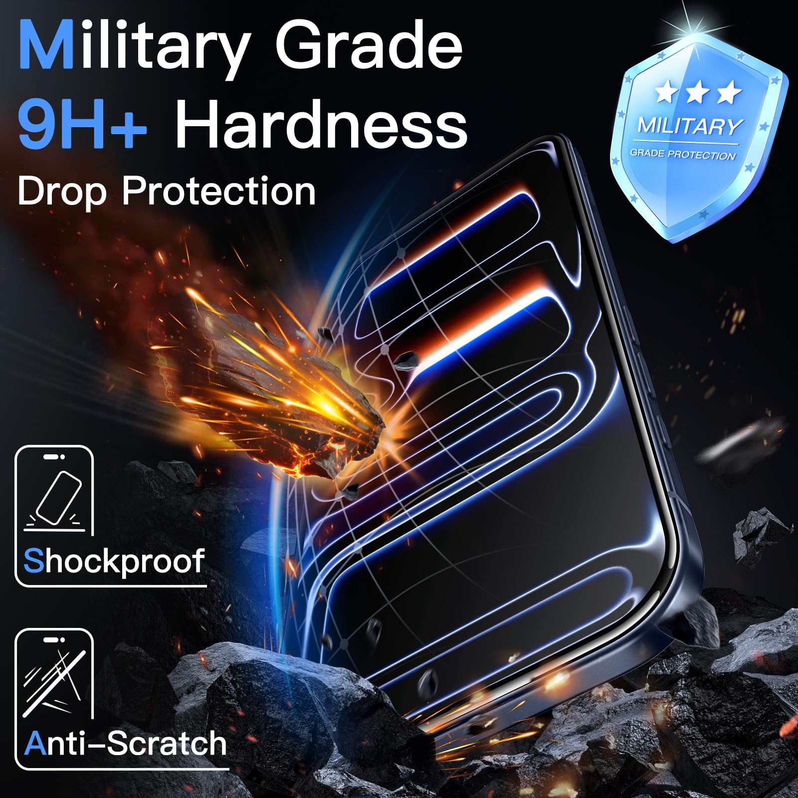 [9H Military-Grade Protection] Features 9H hardness military-grade tempered glass for significantly enhanced scratch and wear resistance. Effectively withstands drop impacts and everyday bumps