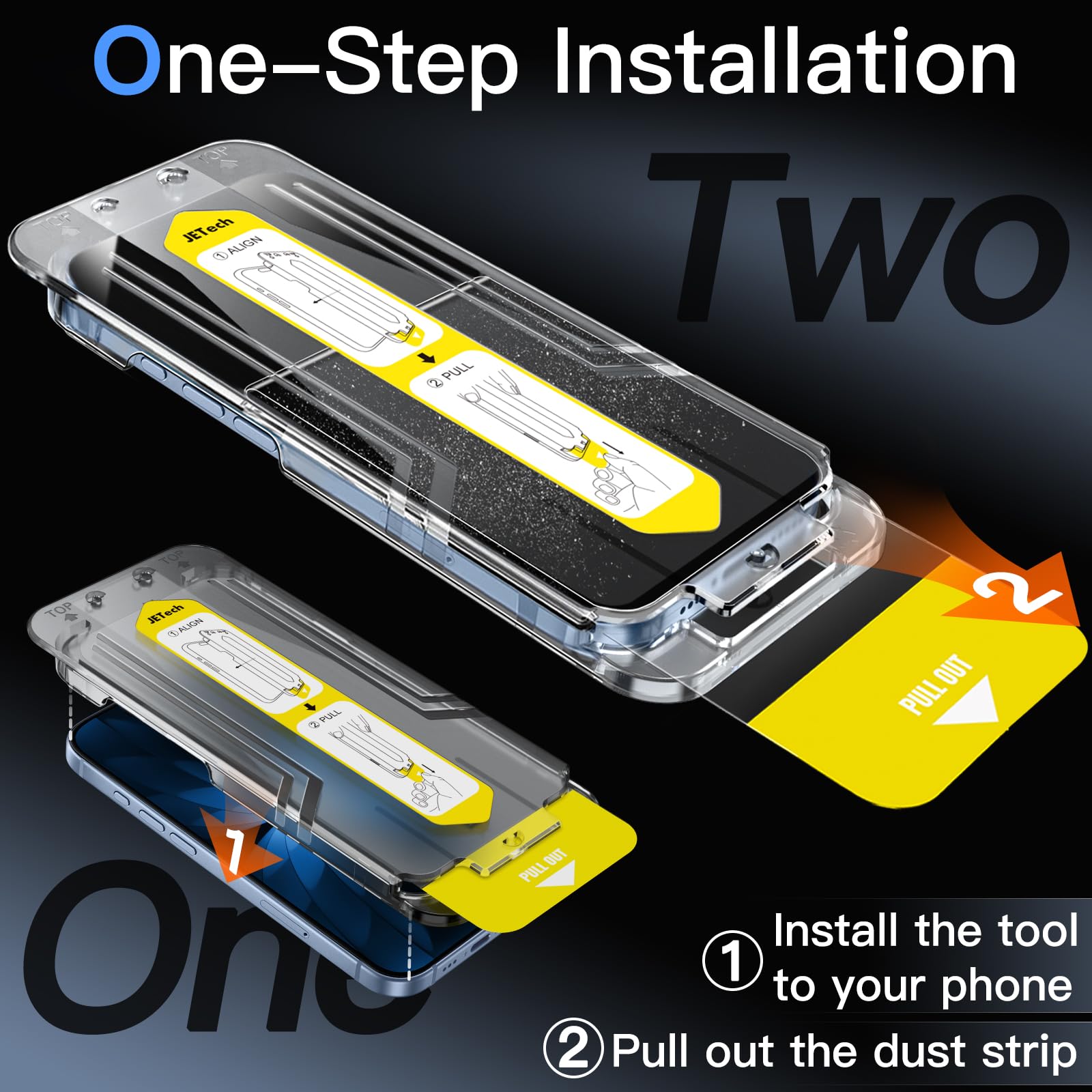 [One-Step Installation] Simply put the alignment tool on the device, pull out the dust strip, the screen protector will align automatically. No more worry about dust and air bubbles