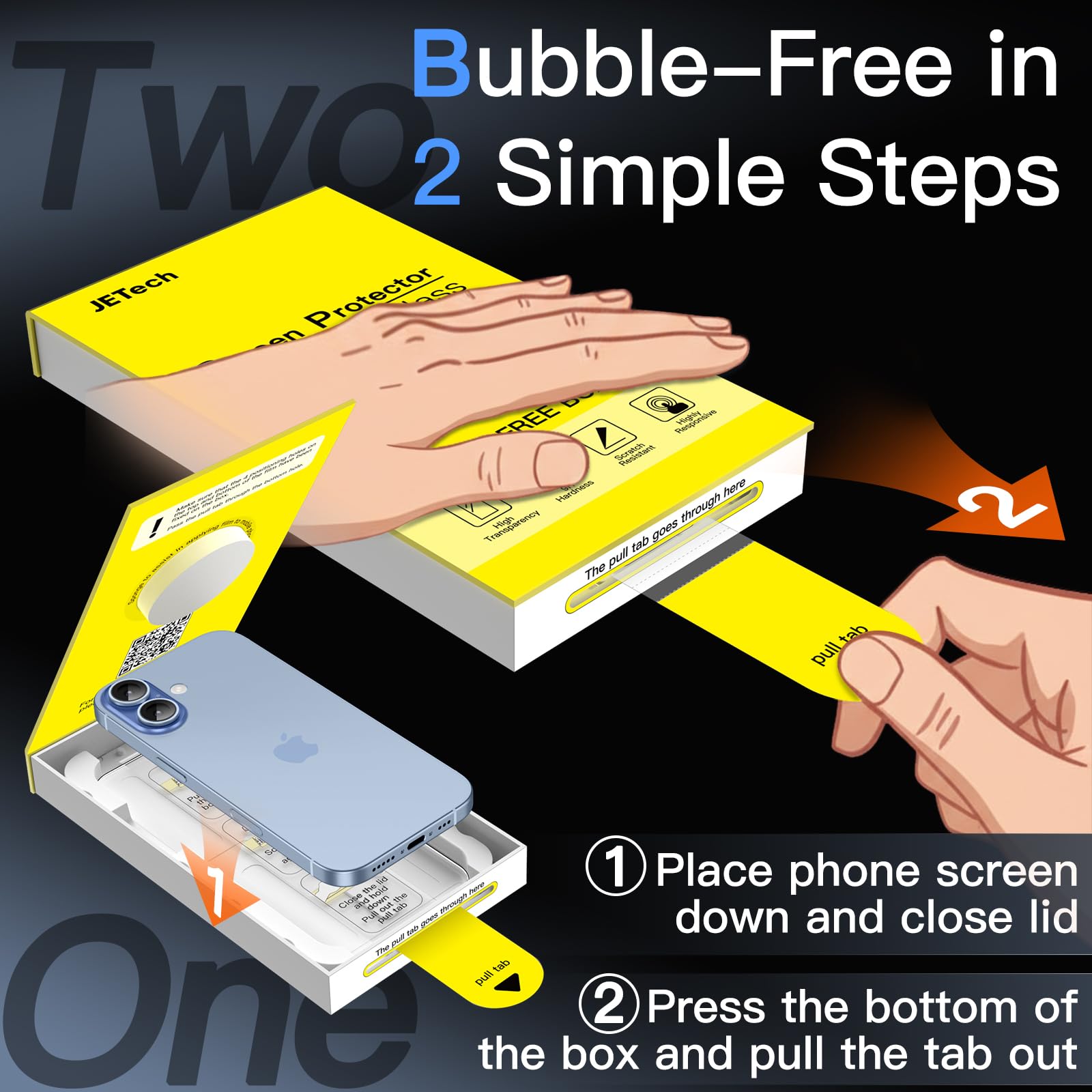 • [Super Easy Installation] Simply snap your phone upside down onto the alignment tool, pull out the pull-tab, and the screen protector automatically aligns itself for a quick, bubble-free adhesion