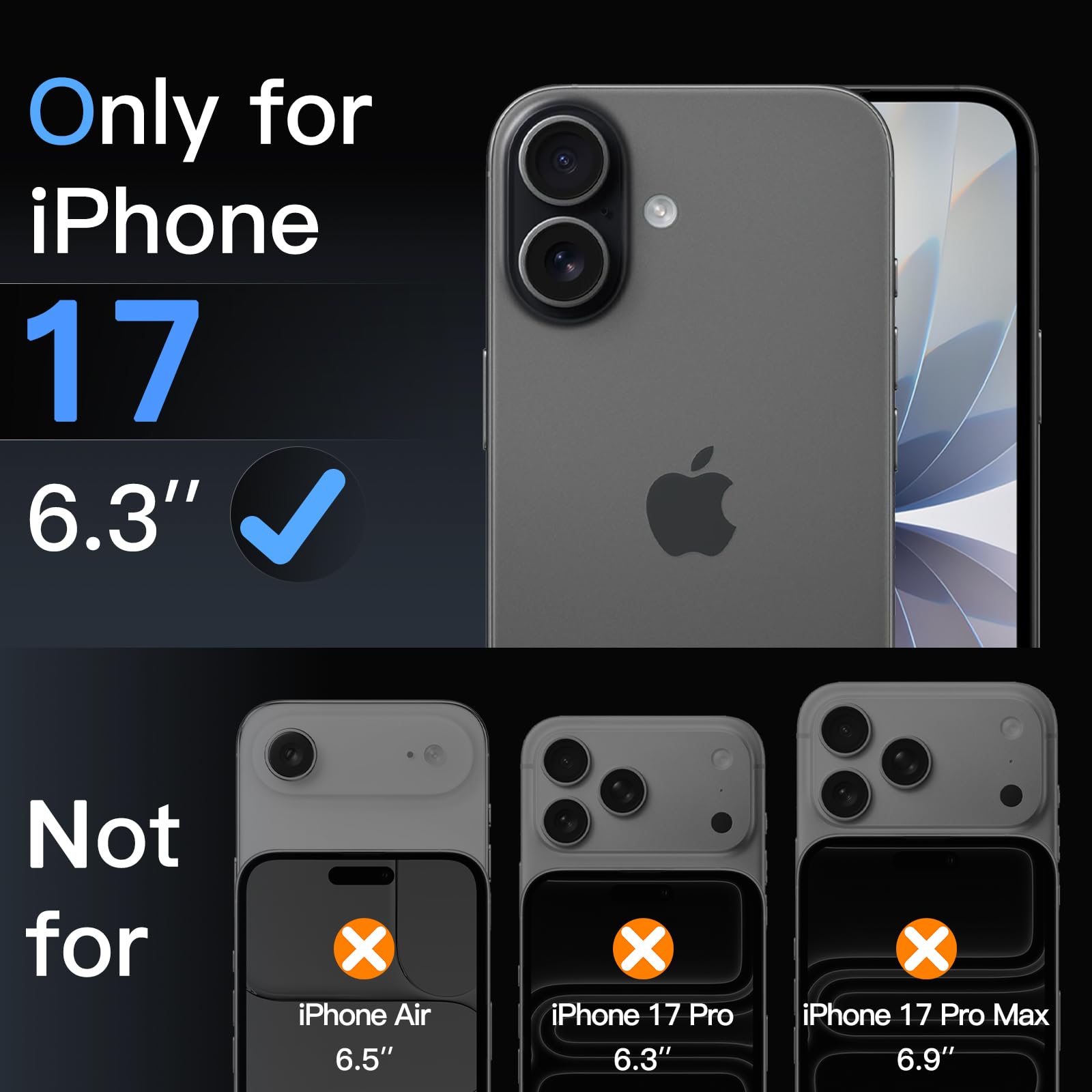 [Compatibility] Precisely fit for iPhone 17 6.3-inch. NOTE: Not for iPhone Air / 17 Pro / 17 Pro Max. Seamlessly cover the camera lens and prevent dust and water. Compatible with most phone cases