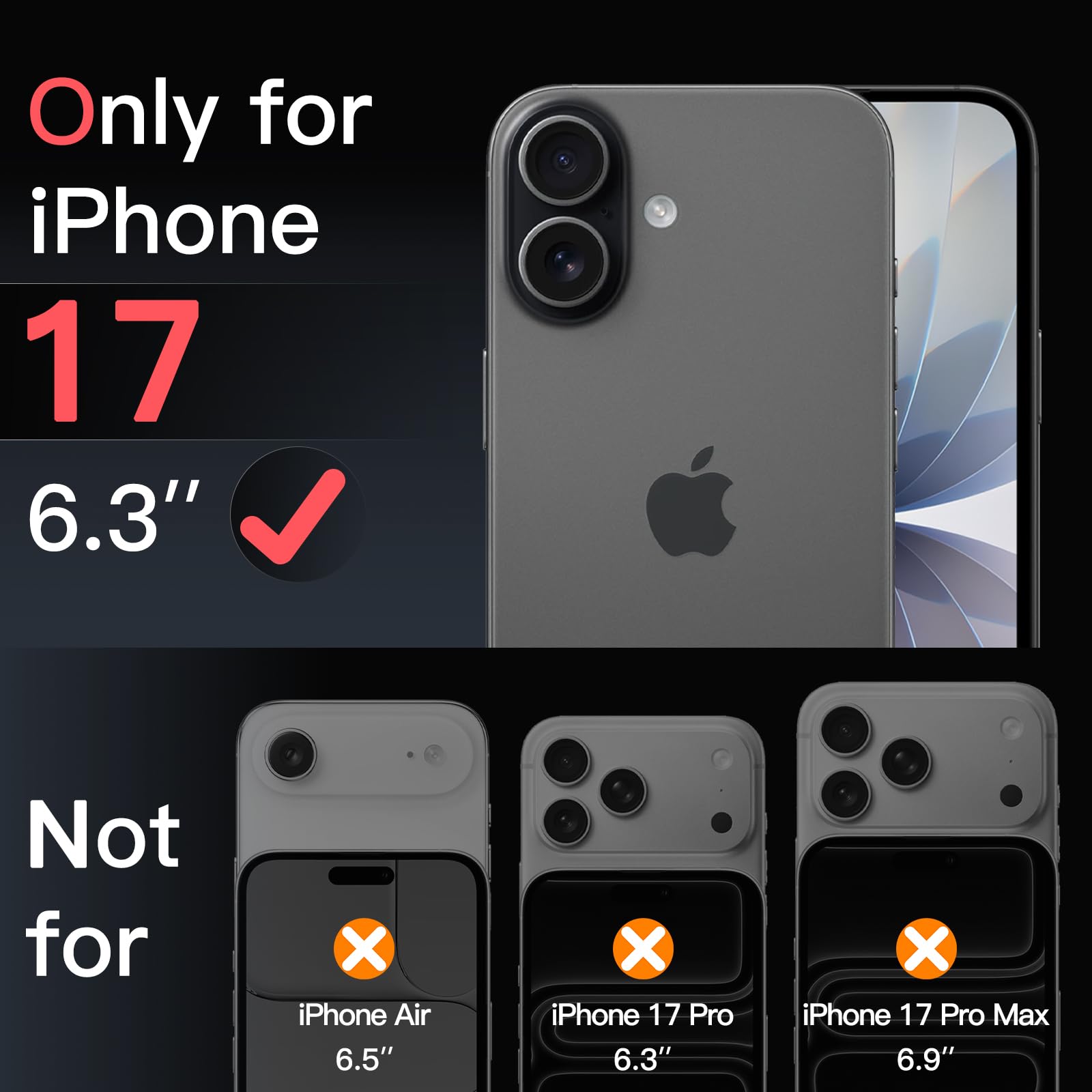 • [Compatibility] Precisely fit for iPhone 17 6.3-inch. NOTE: Not for iPhone Air / 17 Pro / 17 Pro Max. Seamlessly cover the camera lens and prevent dust and water. Compatible with most phone cases
